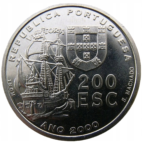 PORTUGALIA 200 ESCUDOS 2000 MAGELLAN STATEK ŻAGLOWIEC UNC