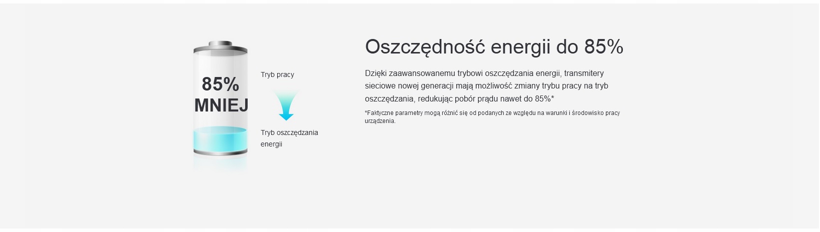 Благодаря расширенному режиму энергосбережениясетевые передатчики нового поколения имеют возможность смены режима работы на режим экономии,снижение энергопотребления до 85%*