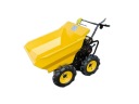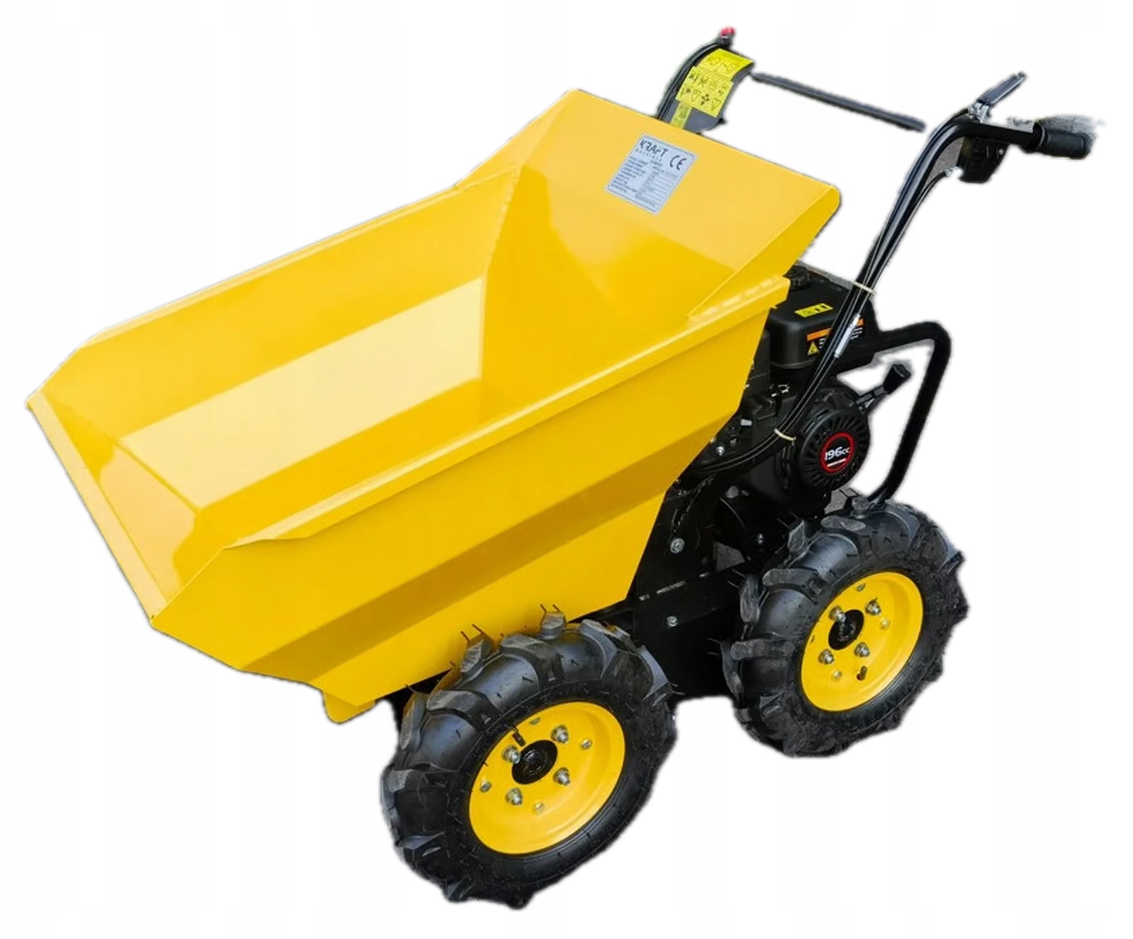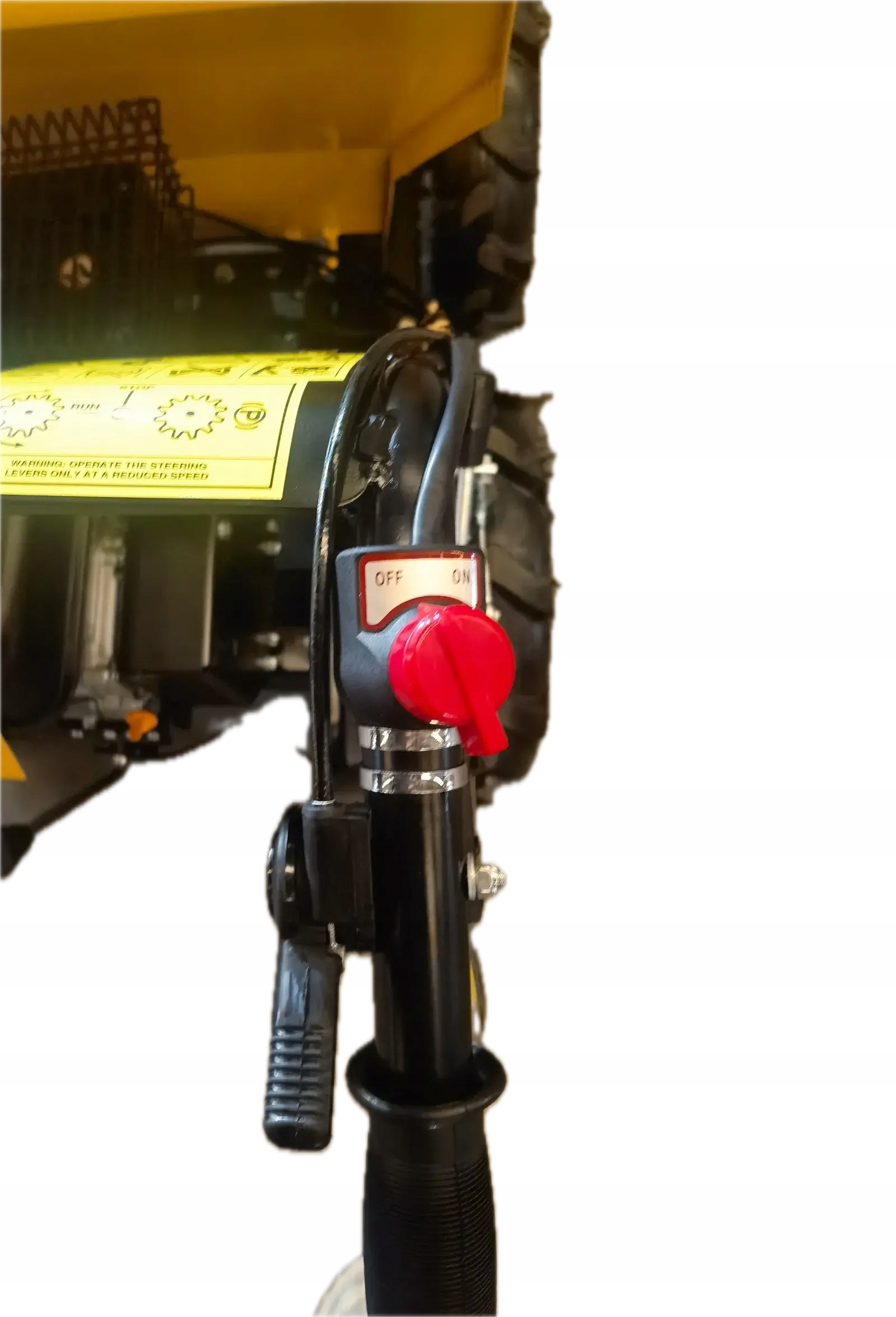 Solidna skrzynia ładunkowa umożliwia transport materiałów o wadze do 400 kg, co czyni to wozidło niezwykle praktycznym narzędziem zarówno na placach budowy, jak i w gospodarstwach rolnych czy ogrodach. Duża ładowność znacząco ogranicza liczbę kursów potrzebnych do przewiezienia materiałów, oszczędzając czas i energię użytkownika. Konstrukcja pojazdu została wzmocniona tak, aby utrzymać stabilność przy maksymalnym obciążeniu.