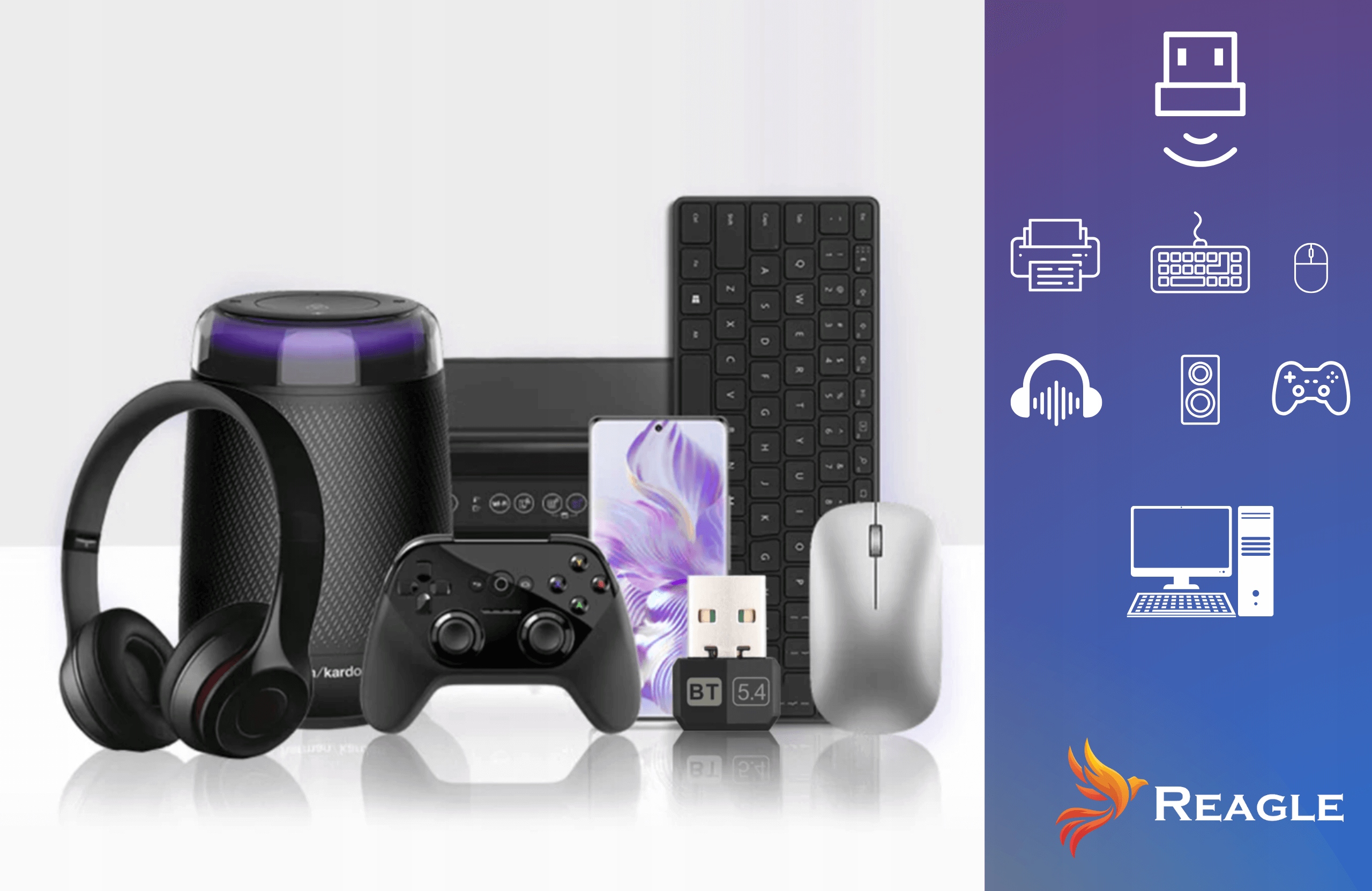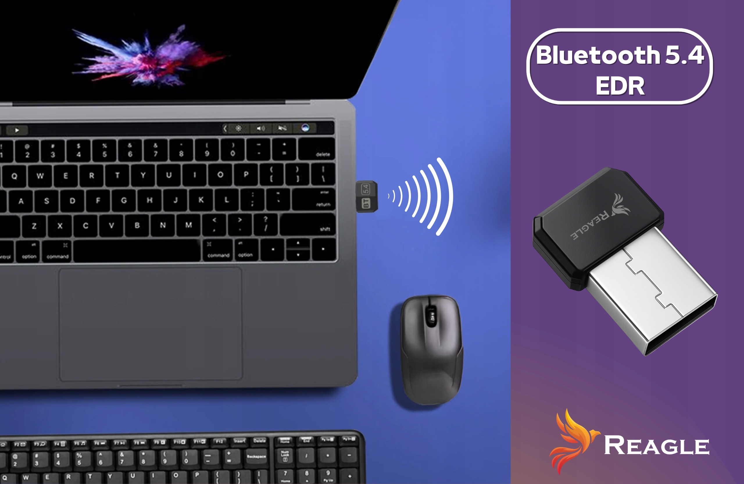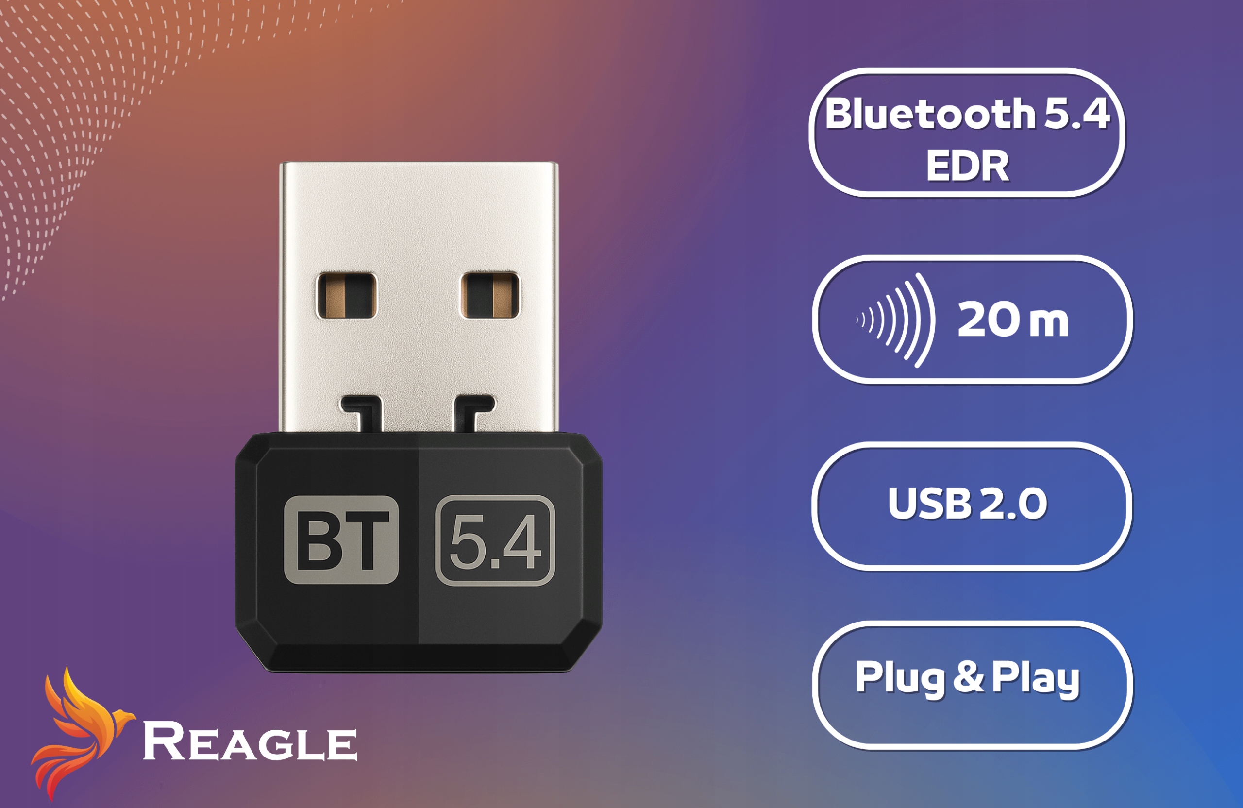Adapter Bluetooth USB 5.4 RYB54 od Reagle to szybki i niezawodny sposób na bezprzewodowe połączenie Twojego komputera z urządzeniami Bluetooth. Idealny do laptopów i PC – działa od razu po podłączeniu, bez zbędnych kabli, opóźnień i instalowania sterowników.