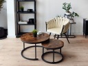Zestaw Galen to świetna propozycja stolików kawowych do salonu. Przemyślana konstrukcja pozwala wsunąć mniejszy stolik pod większy, co pozwala zaoszczędzić miejsca, gdy z niego nie korzystamy. Największą uwagę przykuwa ciekawe wzornictwo blatów w kolorze postarzanego dębu. W połączeniu z czarnym matowym stelażem wykonanym ze stali malowanej proszkowo stanowi oryginalne połączenie nadające każdemu wnętrzu oryginalnego charakteru. Całość wykonana z materiałów najwyższej jakości z zachowaniem dbałości o najmniejsze szczegóły. Nowoczesny prosty styl i ponadczasowa forma świetnie wpasują się do każdego motywu dekoracyjnego. Model cechuje wyjątkowy design, wyjątkowo gruba konstrukcja i grube blaty, które doskonale sprawdzą się w nowocześnie zaaranżowanych pomieszczeniach w stylu industrialnym, loftowym i vintage.