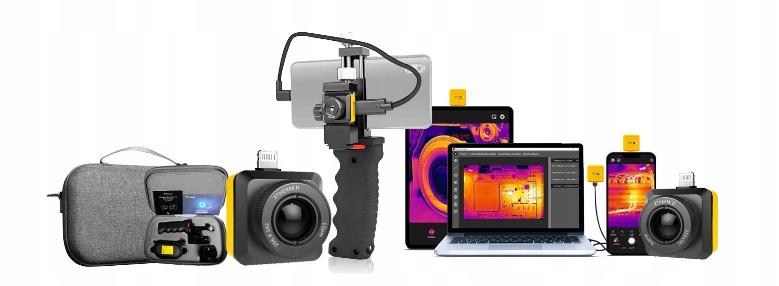 THERMAL MASTER TS2 PRO to wszechstronne i profesjonalne urządzenie termowizyjne, które podłączysz bezpośrednio do smartfona lub tabletu ze złączem lighting. To idealne narzędzie do testowania obwodów PCB, naprawy małych komponentów elektronicznych, inspekcji systemów HVAC, identyfikacji strat ciepła, lokalizacji nieszczelności oraz monitorowania stanu maszyn. Kamera oferuje dużą precyzję pomiarów temperatury (czułość 0,04°C, dokładność ±2°C), regulowany obiektyw 8 mm oraz tryb obraz-w-obrazie (PIP). Zaawansowana aplikacja Xtherm infrared umożliwia wykonywanie zdjęć i nagrywanie filmów, które ułatwiają późniejszą analizę i raportowanie danych. W zestawie znajdziesz uchwyt ręczny, kabel przedłużający lighting oraz etui ochronne.