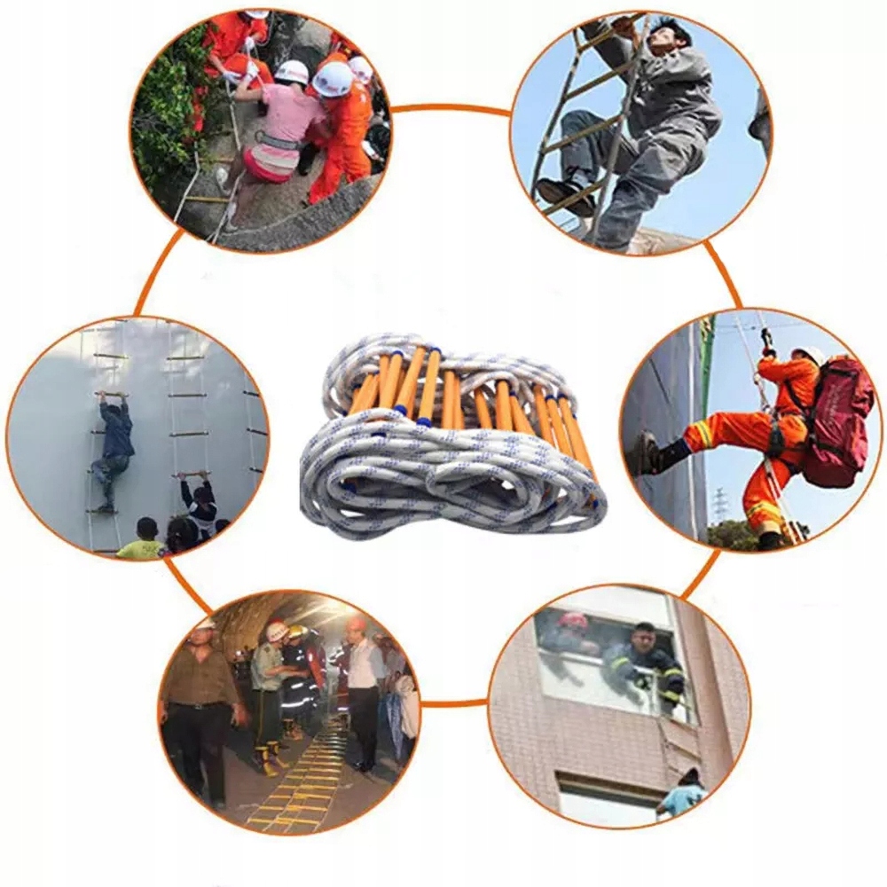 【Łatwa w użyciu i szybka w montażu】- Nasza drabina ewakuacyjna została zaprojektowana z myślą o wygodzie i dostępności. Jest gotowa do użycia w kilka sekund i można ją rozłożyć lub zmontować bez użycia narzędzi. Zaprojektowana z myślą o dachach, karuzelach w parkach rozrywki, domkach na drzewie lub schodach ewakuacyjnych, gwarantuje, że możesz na niej polegać w nagłych wypadkach.