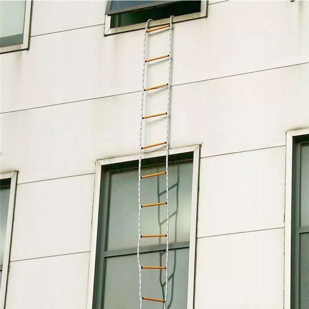 Drabina ewakuacyjna przeciwpożarowa 10m/32,8ft z 2 karabinkami, drabina linowa ognioodporna, drabina ratunkowa, drabina awaryjna