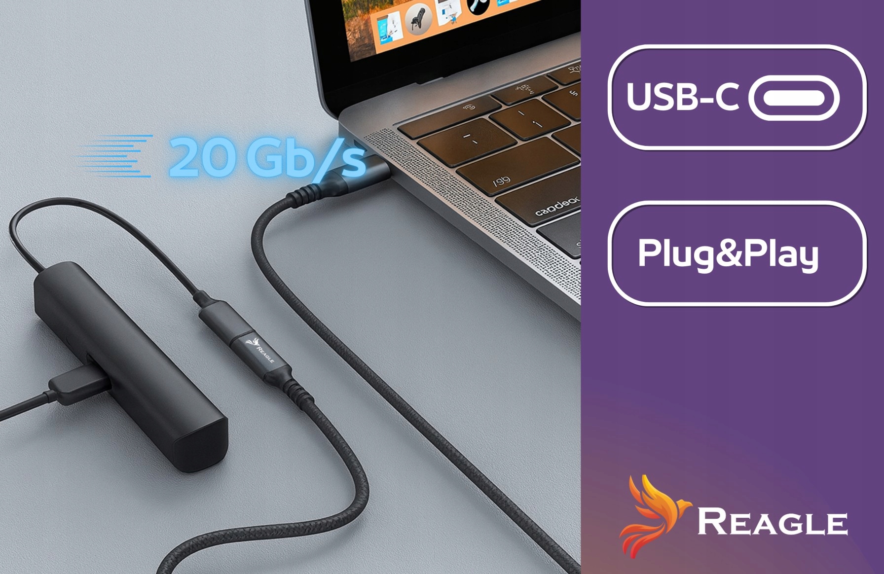 Dzięki nowoczesnemu standardowi USB 3.2 Gen 2x2, przedłużacz USB-C Reagle oferuje dwukrotnie większą przepustowość niż standard Gen 2, osiągając nawet 20 Gb/s. To ultraszybki transfer danych, który znacząco przyspiesza codzienną pracę i obsługę dużych plików.
