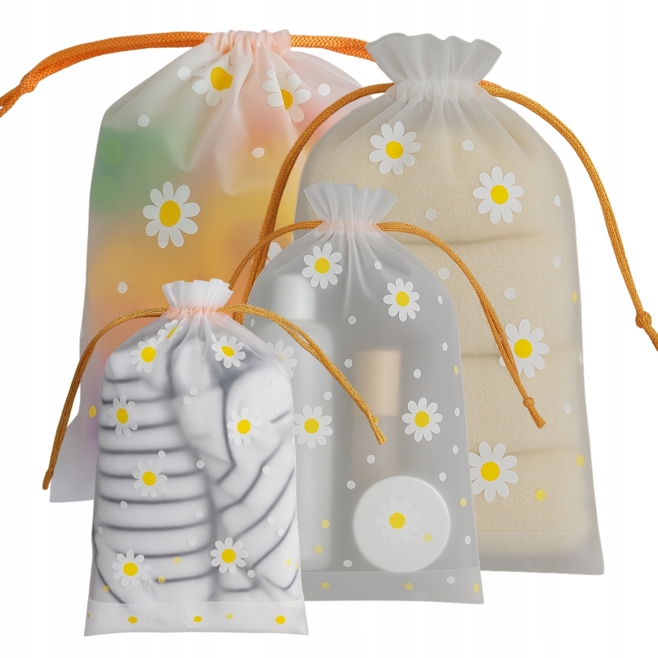 ✅ Komplet zawiera 4 torebki w różnych rozmiarach, dzięki czemu z łatwością dopasujesz każdą do konkretnego zastosowania – od drobiazgów po większe elementy garderoby czy buty.