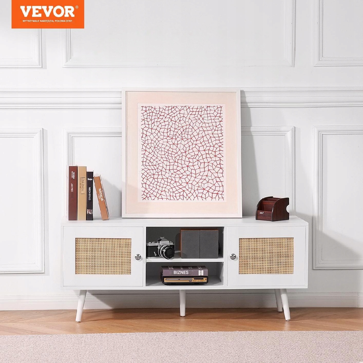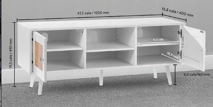 Szafka RTV Boho to połączenie wyjątkowego stylu i funkcjonalności. Naturalny rattan oraz biały kolor wprowadzą do wnętrza lekkość i świeżość. Regulowane półki pozwalają na maksymalne wykorzystanie przestrzeni, a solidna konstrukcja zapewnia stabilność nawet przy ciężkich urządzeniach. Zainwestuj w mebel, który nie tylko pomieści sprzęt, ale stanie się ozdobą salonu! Nie czekaj – odmień swoje wnętrze już dziś!
