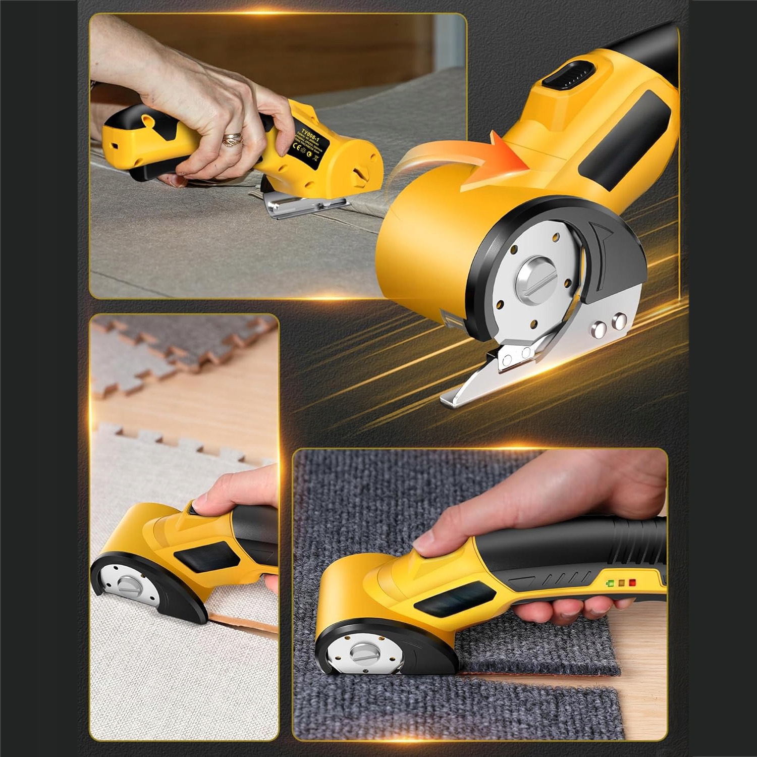 Elektryczne narzędzie tnące nadaje się do cięcia różnych materiałów, takich jak papier, tektura, tkanina, plastik, skóra, dywan itp., spełniając potrzeby różnych użytkowników, takich jak projektanci, krawcy, majsterkowicze itp. Każdy zestaw zawiera nożyczki elektryczne, zapasowe ostrza, torbę do przechowywania, kabel USB I instrukcję obsługi.