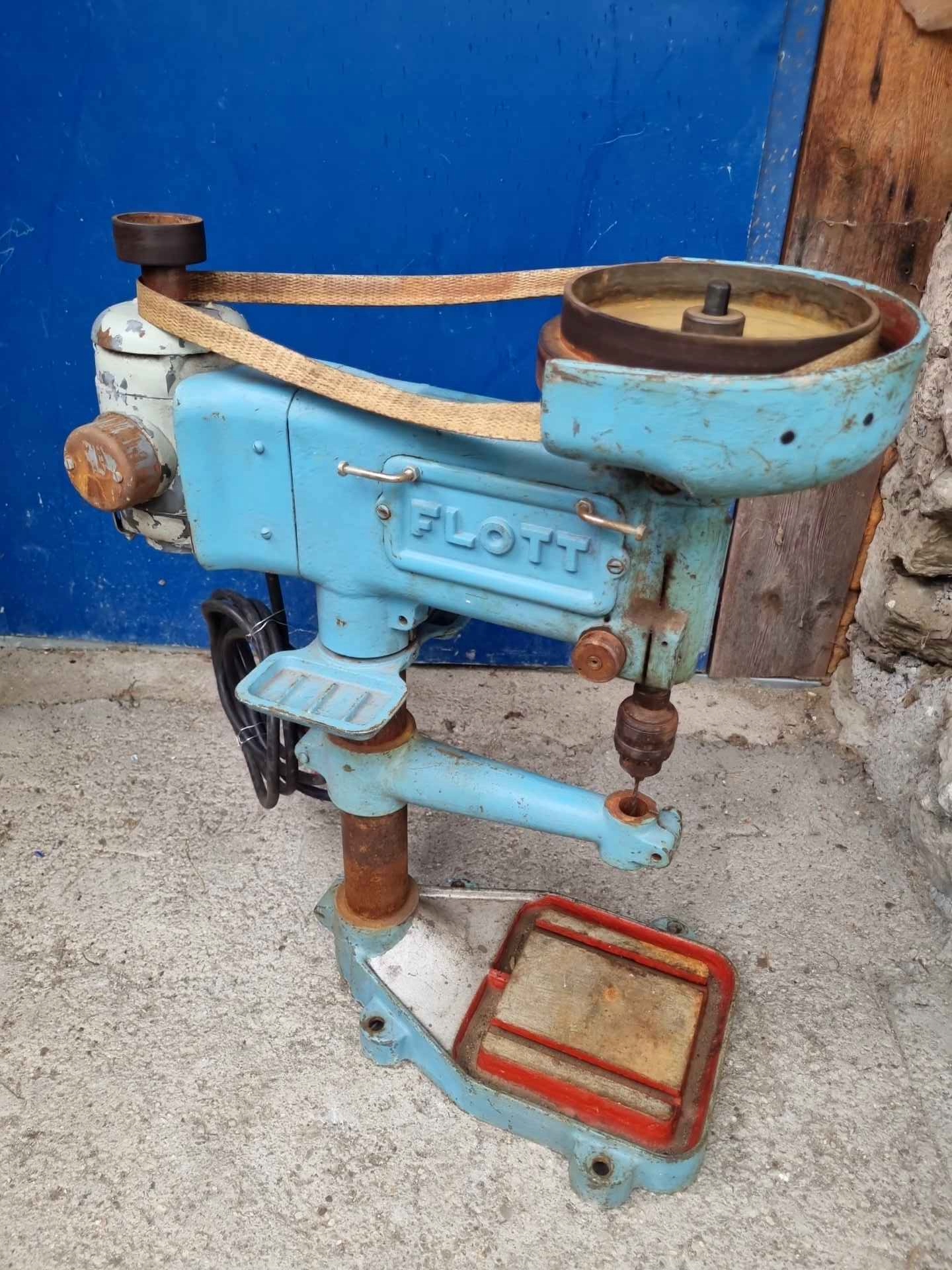 Wiertarka przywieziona z Niemiec, w pełni sprawna, ale pasek za luźny, do wymiany. Wysokość całkowita 70cm, stan jak widać, niemiecka marka Flott.