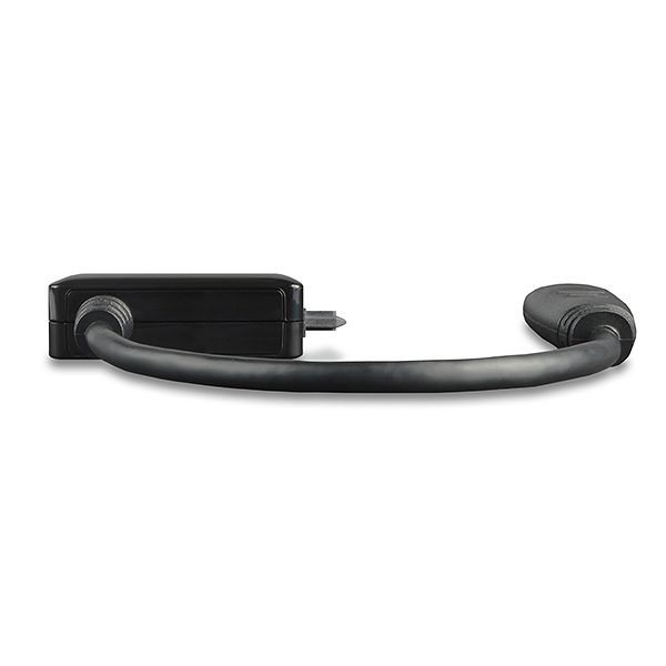 Połączenie za pomocą złącza USB-C male na 20 cm długi kabel sztywno podłączony do adaptera.