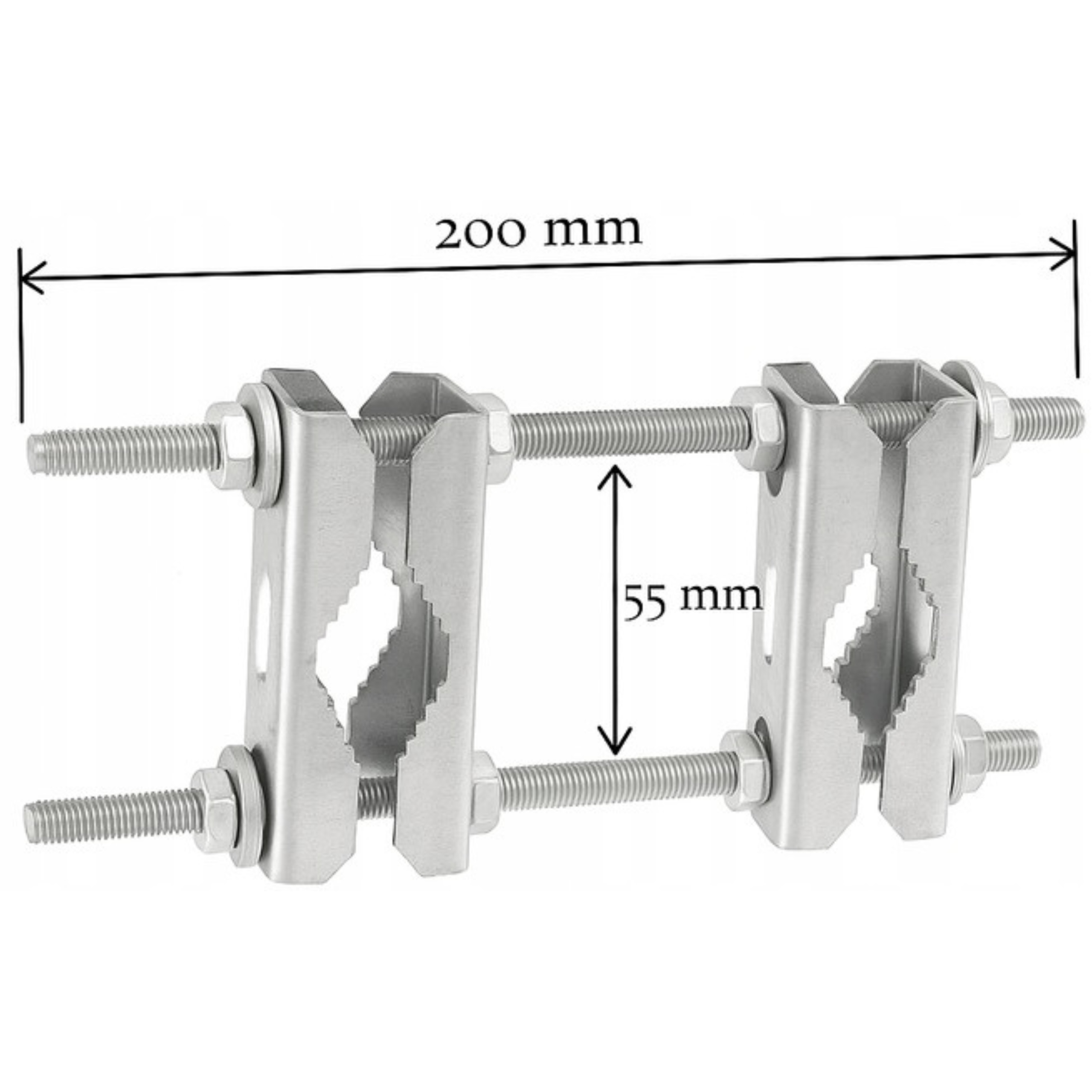 Wykonany z grubej, ocynkowanej stali, zapewnia mocne, trwałe i odporne na warunki atmosferyczne połączenie masztów antenowych oraz elementów konstrukcyjnych.