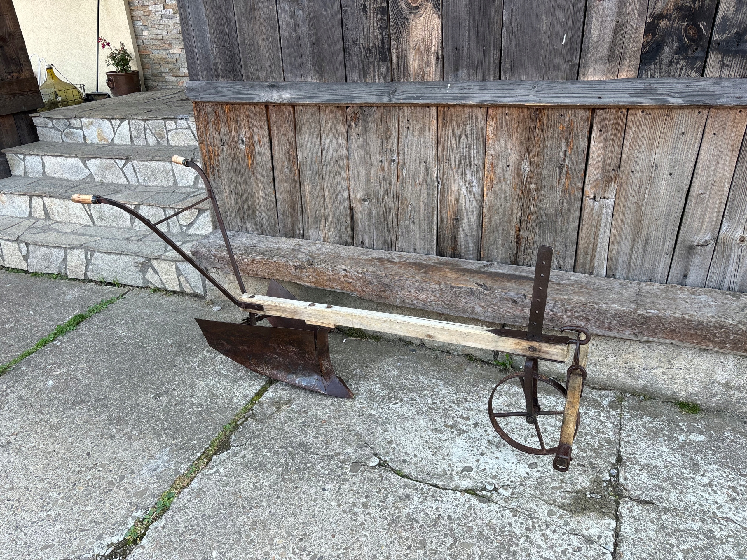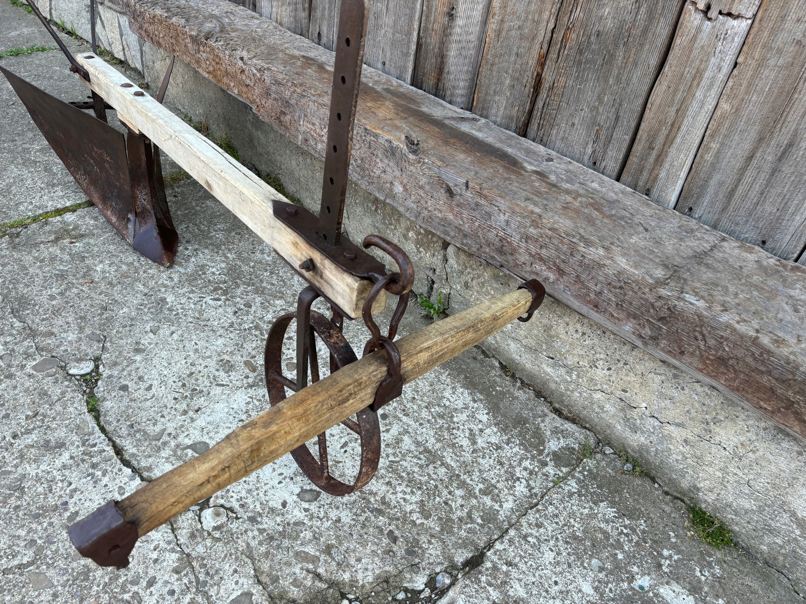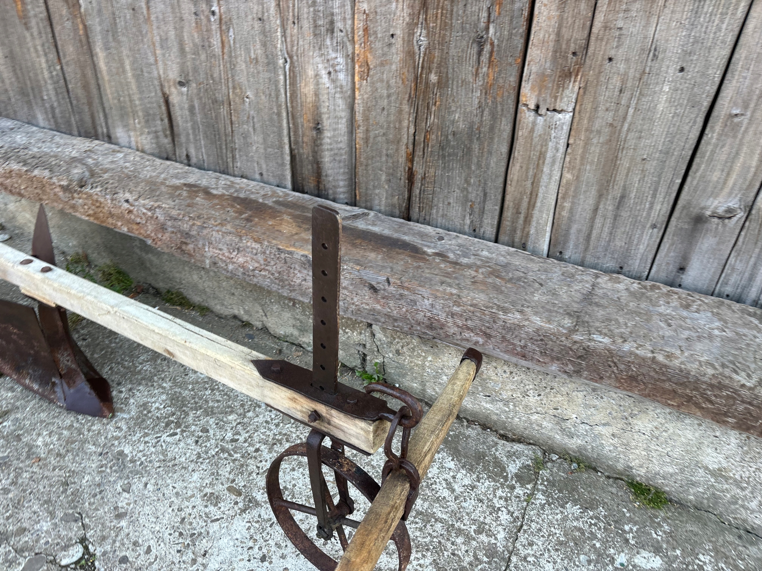 Stary oryginalny pług konny w komplecie z orczykiem za który konie ciągły pług.Stan jak na foto.Pług do wysyłki zostanie delikatnie rozebrany ale bez problemu można go złożyć.Przy zakupie podkowa na szczęście gratis.