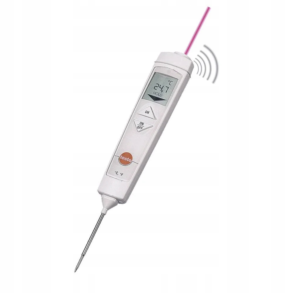 Szybki i precyzyjny termometr na podczerwień dla przemysłu spożywczego. Monitoruj temperatury graniczne produktów za pomocą bezdotykowego powierzchniowego skanowania bez uszkodzenia produktu. Zapewnia to spełnienie normy HACCP. Z czujnikiem bagnetowym do pomiaru temperatury wewnętrznej. Produkt dostępny do sprzedaży dla przedsiębiorstw.