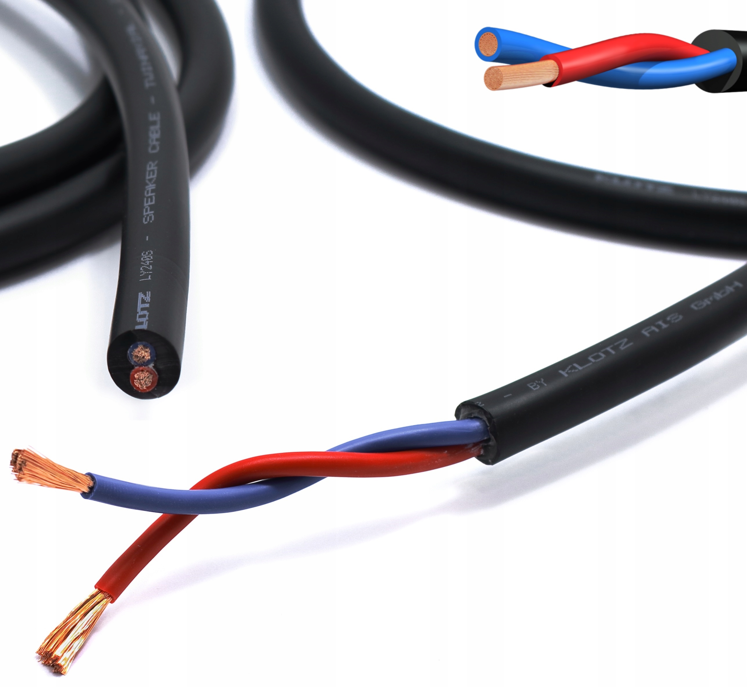 Profesjonalny i elastyczny kabel głośnikowy wykonany z czystej miedzi beztlenowej izolowany wytrzymałym materiałem PVC, o przekroju 2,5 mm2 znajdujący zastosowanie w sprzętach studyjnych, estradowych a także w domowych wersjach sprzętu audio.