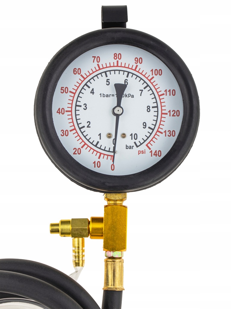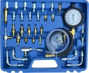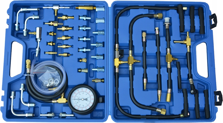 Zestaw do pomiaru ciśnienia paliwa w układach z wtryskiem benzyny. Przeznaczony do wszystkich typów układów wtryskowych , gdzie przewidziano pomiar ciśnienia benzyny. Ciśnienie: 0-10 BAR (0-140 Psi) Miernik ciśnienia układu wtryskowego silniki benzynowe.
