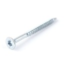 Wkręty przeznaczone do profesjonalnego łączenia elementów drewnianych i drewnopochodnych, takich jak płyta wiórowa, sklejka czy płyty OSB. Wykonane z hartowanej stali i zabezpieczone powłoką ocynku białego, są odporne na korozję, co zapewnia ich trwałość i niezawodność w trudnych warunkach.