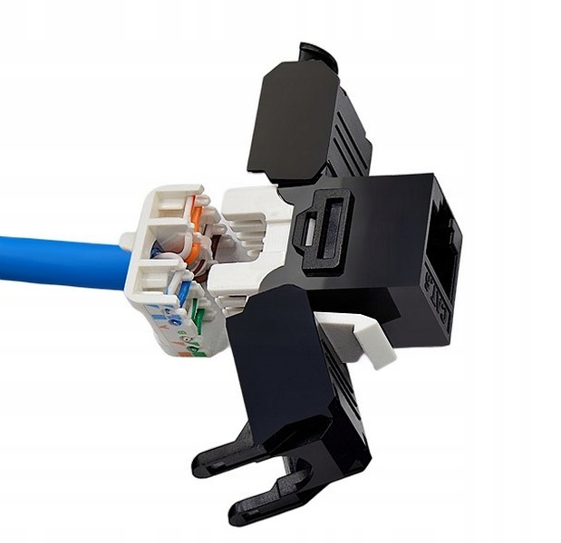 Zgodność ze standardem keystone zapewnia łatwy montaż/demontaż z wykorzystaniem mechanizmu zatrzaskowego.