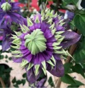 JAK WYGLĄDA: Kwiaty bardzo dekoracyjne, fioletowoniebieskie z zielonożółtymi końcami działek, zawsze pełne, zmienne w kształcie. Kwitnie bardzo obficie w VI i kontynuuje kwitnienie do IX. Liście ciemnozielone, całobrzegie, pojedyncze, sercowate i trójdzielne, złożone z eliptycznych, ostro zakończonych listków.