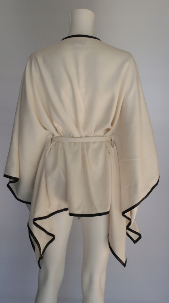 PONCHO DAMSKIE - KREMOWE, Z CZARNĄ OBWÓDKĄ Z ECO SKÓRY,