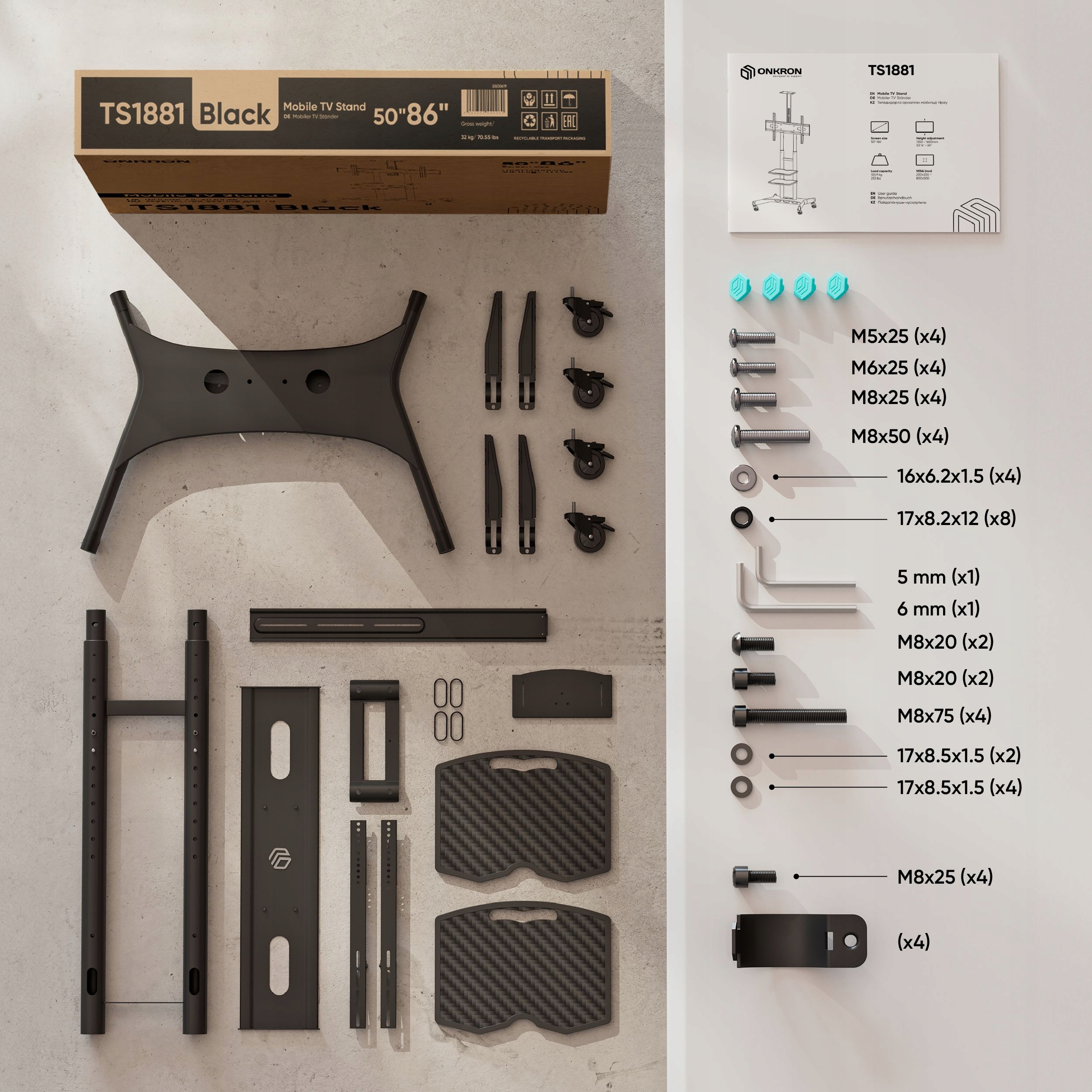 Stabilny mobilny stojak pod telewizor – ONKRON TS1881-B