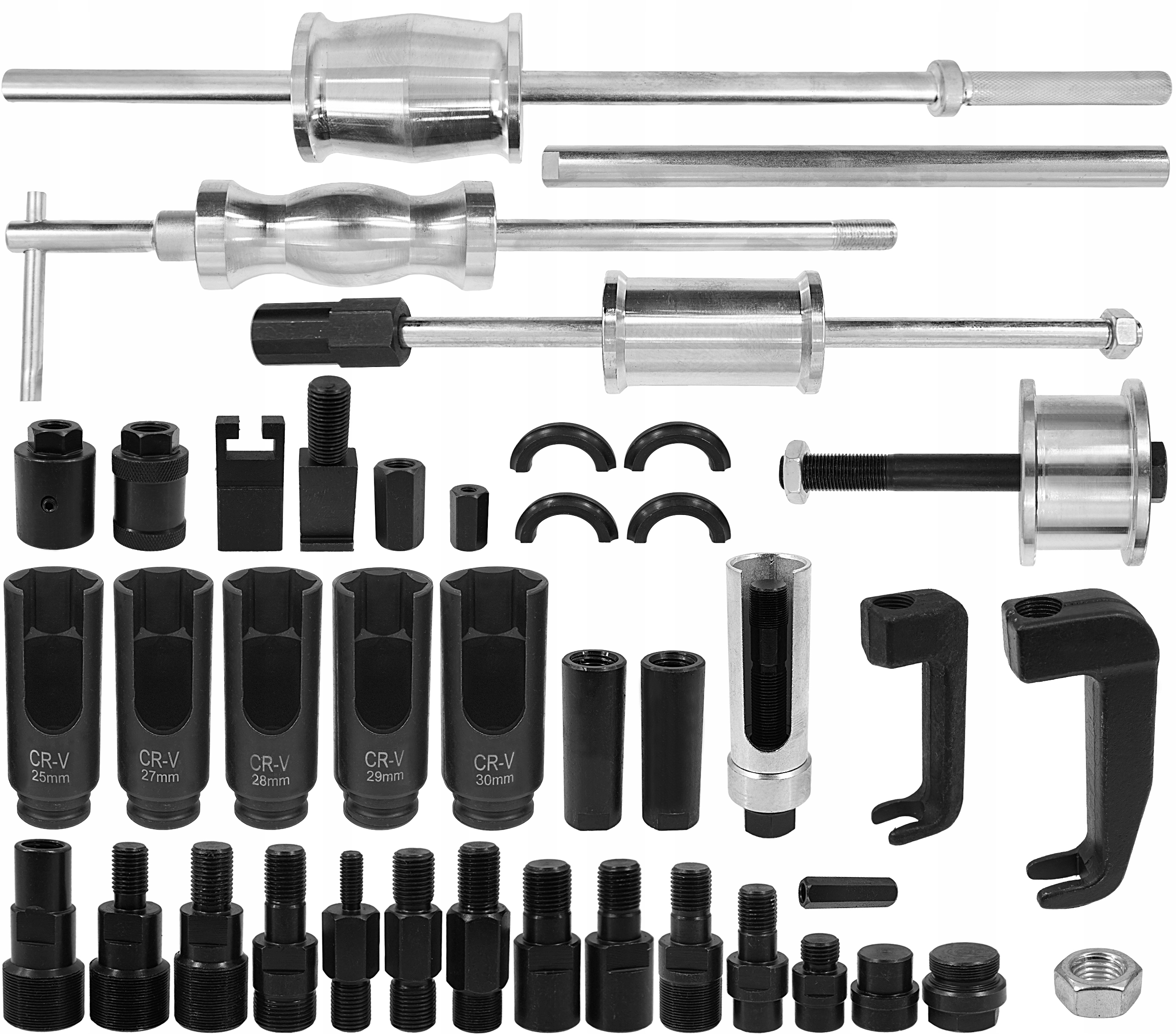 В комплект входят инерционные молотки, адаптеры, колпачки и наконечники, которые они обеспечивают быстрое, эффективное и безопасное удаление форсунок без риска повреждения компоненты двигателя. Благодаря точному изготовлению и использованию прочных материалов инструмента они пригодны для интенсивной многолетней эксплуатации.