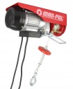 Wyciągarka posiada wysoki standard bezpieczeństwa, dzięki zdalnemu zastosowaniu sterowania z przyciskiem awaryjnego zastosowania, mocny wydajny silnik (550 Watt), hamulec do bezpiecznego zatrzymania ładunku na pożądanej wydajności oraz automatyczny wyłącznik z natychmiastowym zatrzymaniem.