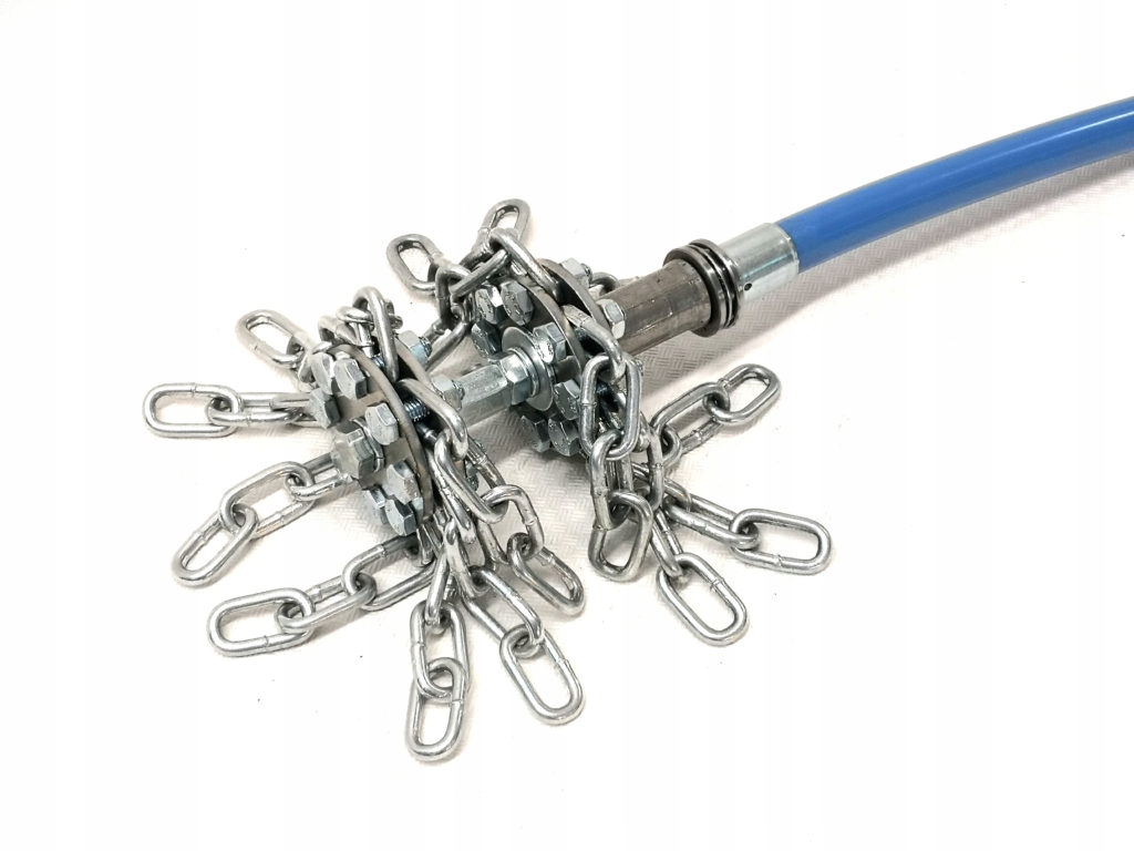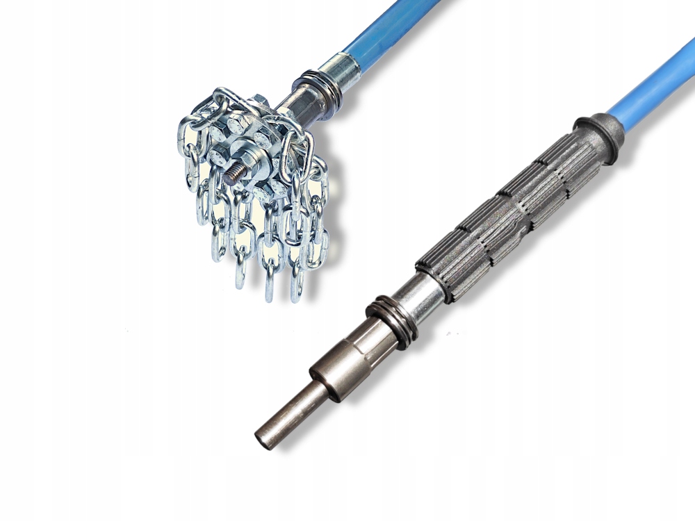 Головка имеет резьбовой стержень с винтом цепной патрон. Его можно быстро открутить и вставить любую цепь разной длины - в зависимости от диаметра дымохода. Другие дополнительные картриджи также могут быть вставлены.