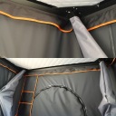 Supertechniczny namiot to nie dach samochodu. Posiada aluminiową obudowę. Zwiększona objętość wewnętrzna dzięki podwójnemu otwarciu. Niezawodne amortyzatory gazowe ułatwiają otwieranie i zamykanie. Nowoczesne wodoodporne materiały. Siatka na komary. Lekka drabina automatyczna. Wiele innych niezbędnych udogodnień. Wymiary 215x125x130 cm. 85kg.