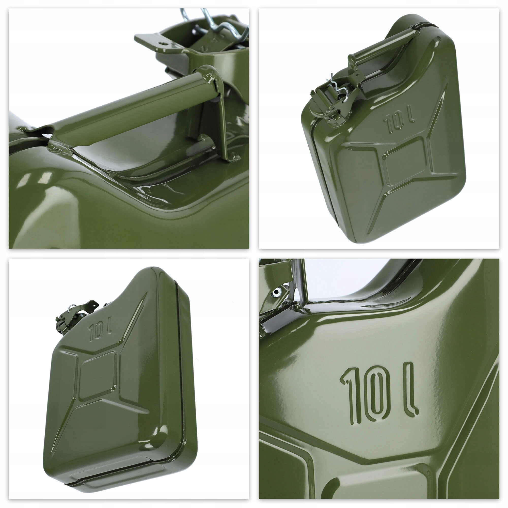 Solidny zbiornik o pojemności 10 litrów, wykonany z tłoczonej stali malowanej proszkowo. Przystosowany do przechowywania i transportu benzyny, ropy, oleju napędowego czy oleju opałowego. Wyposażony w szczelny korek z blokadą bagnetową, dodatkową zawleczkę w kształcie „L” oraz wygodną rączkę do przenoszenia.