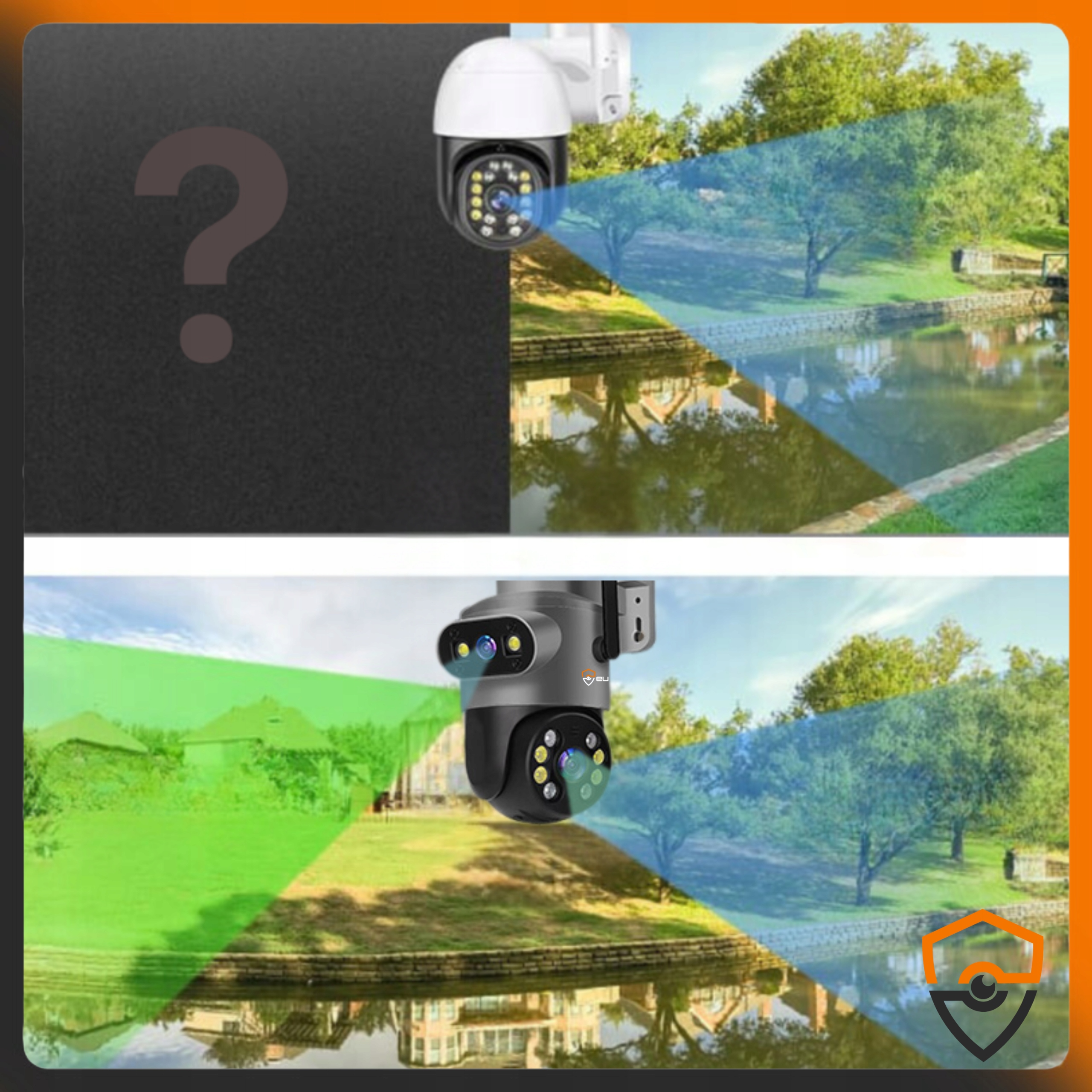 Charakterystyczny podwójny obiektyw zapewnia szerszy kąt widzenia niż tradycyjne kamery. Ten model stworzony został w oparciu o niezawodne technologie i charakteryzuje się niezwykłą funkcjonalnością - może z powodzeniem zastąpić dwie oddzielne kamery.