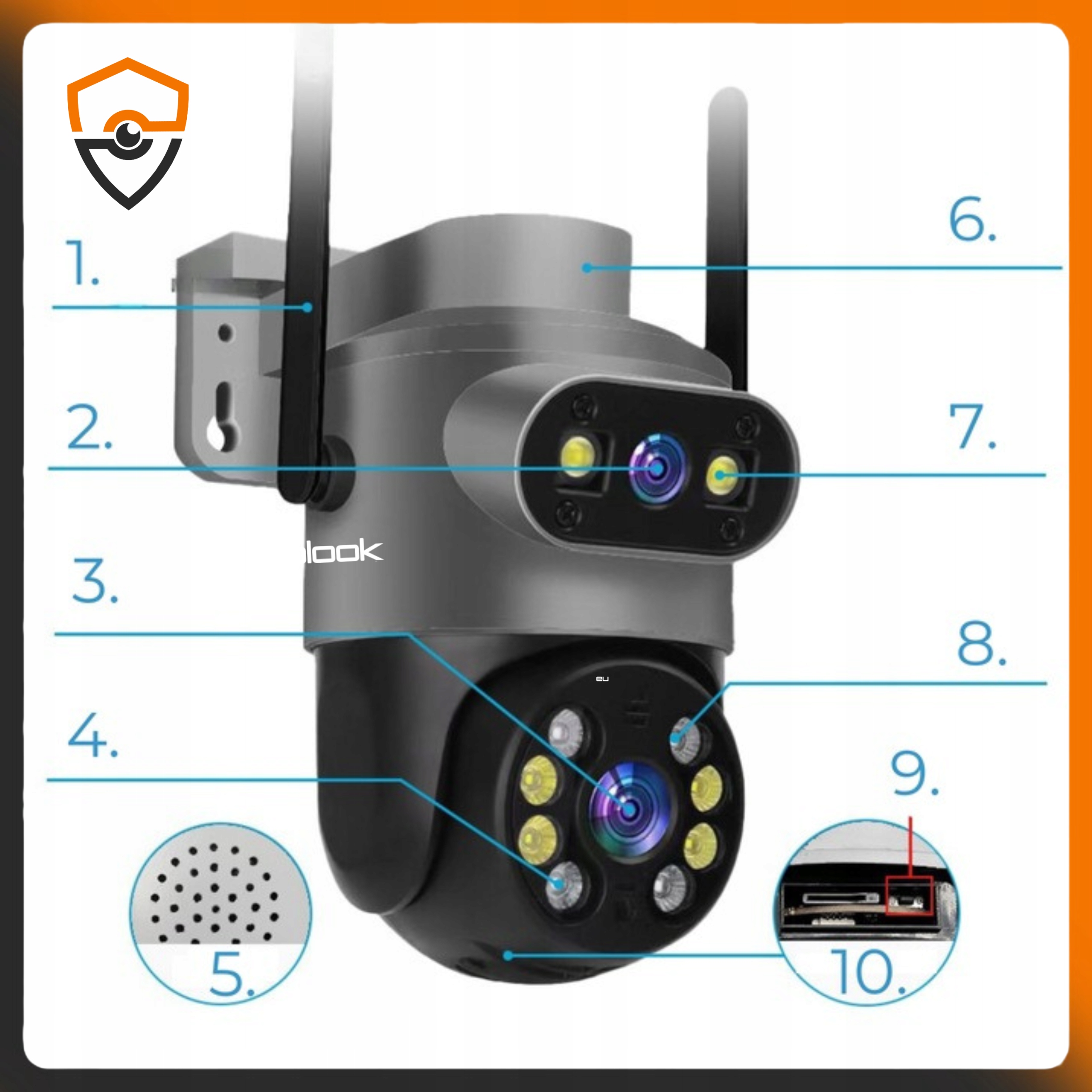 Podwójna, zewnętrzna, wodoodporna kamera IP Wifi do monitoringu z nowoczesnymi funkcjami analizy obrazu AI i wysoką rozdzielczością obrazu. Wodoszczelna obudowa o klasie szczelności IP66 zapewnia możliwość pracy w warunkach zewnętrznych i temperaturze od -25 stopni do +60 stopni w skali Celsjusza. Kamera IP Wifi w grafitowo-czarnej obudowie to uniwersalne rozwiązania, pasujące do elewacji budynków- eleganckie i mało rzucające się w oczy. Ta zewnętrzna Kamera zapewnia wykrywanie obiektów ruchomych i kształtów humanoidalnych, a także śledzi ruch sylwetek ludzkich, zarówno w pionie, jak i poziomie oraz wysyła przy tym alerty w postaci powiadomień PUSH na telefon komórkowy. Kamera została stworzona z myślą o zabezpieczeniu domu, biura, podwórka, garażu, działki, itd. Urządzenie posiada dwa obiektywy imożliwość nagrywania zdarzeń na karę micro SD oraz przechowywania ich w chmurze. Kamera wyposażona jest w funkcję Night Vision, co pozwala na inteligentne doświetlanie obrazu w nocy za pomocą źródła światła IR/LED lub doświetlania podwójnym światłem jednocześnie (automatyczne uruchamianie światła LED po wykryciu obiektu przed obiektywem). Zadbaj o bezpieczeństwo swoje i swoich bliskich z naszą niezawodną kamerą IP Wifi 10MP - jest to produkt polskiej, znanej i zaufanej marki EUROLOOK, należącej do głównego importera urządzeń elektronicznych na rodzimym rynku a także w całej Europie.