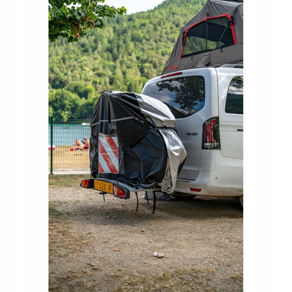 Pokrowiec na rowery mocowane na haku holowniczym to praktyczne rozwiązanie, które skutecznie chroni rowery podczas podróży oraz w czasie postoju na świeżym powietrzu. Wykonany z wytrzymałej tkaniny Oxford 300D z powłoką PU , jest wodoodporny i odporny na działanie warunków atmosferycznych. Idealnie sprawdzi się przy transporcie 3–4 rowerów , zapewniając bezpieczeństwo i wygodę.