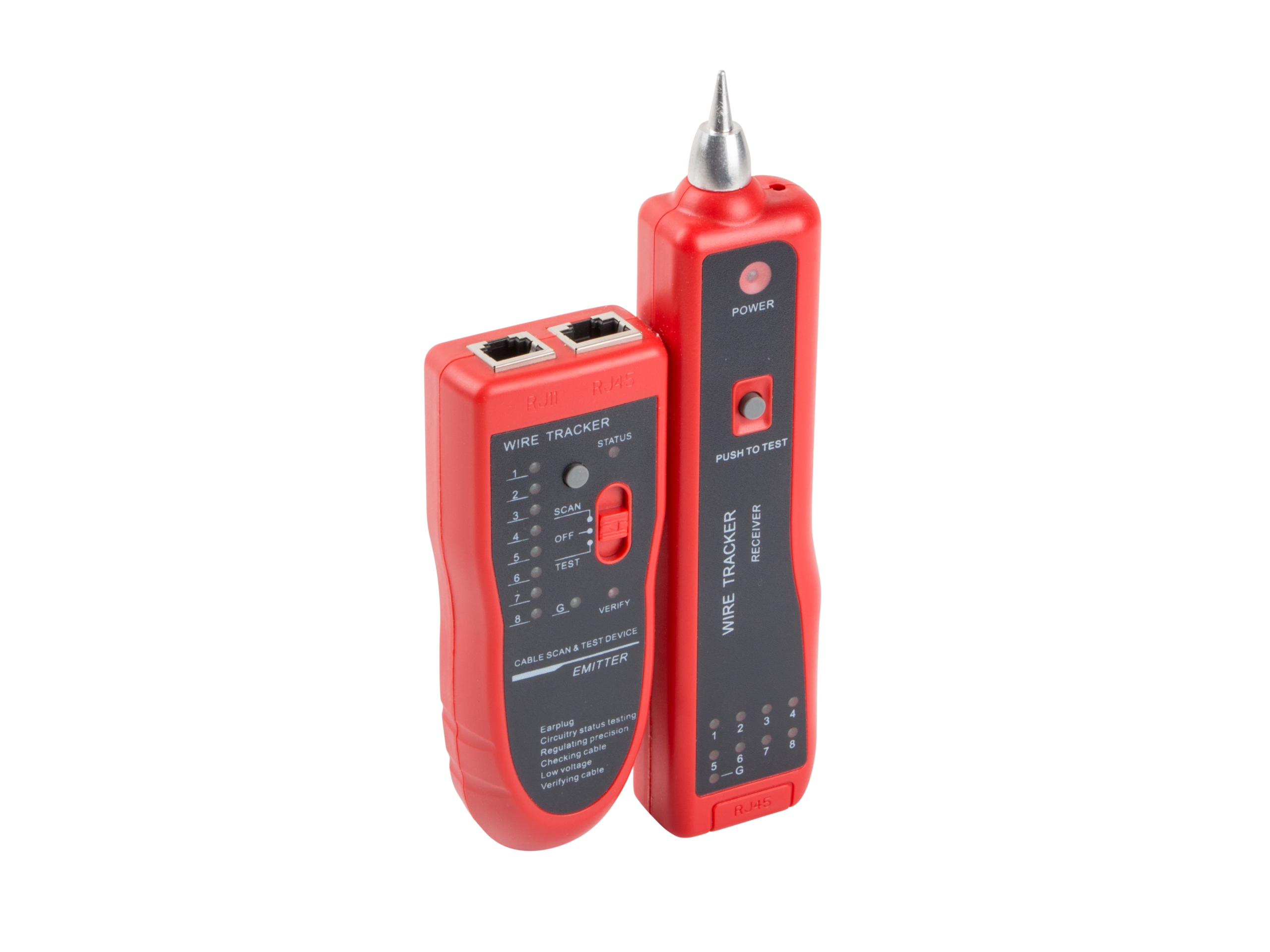 Dzięki powyższemu urządzeniu odnajdziesz przewody w większości rodzajów obsługiwanych terminali jak przełączniki, routery, PC, patch panele, gniazda podtynkowe, natynkowe.