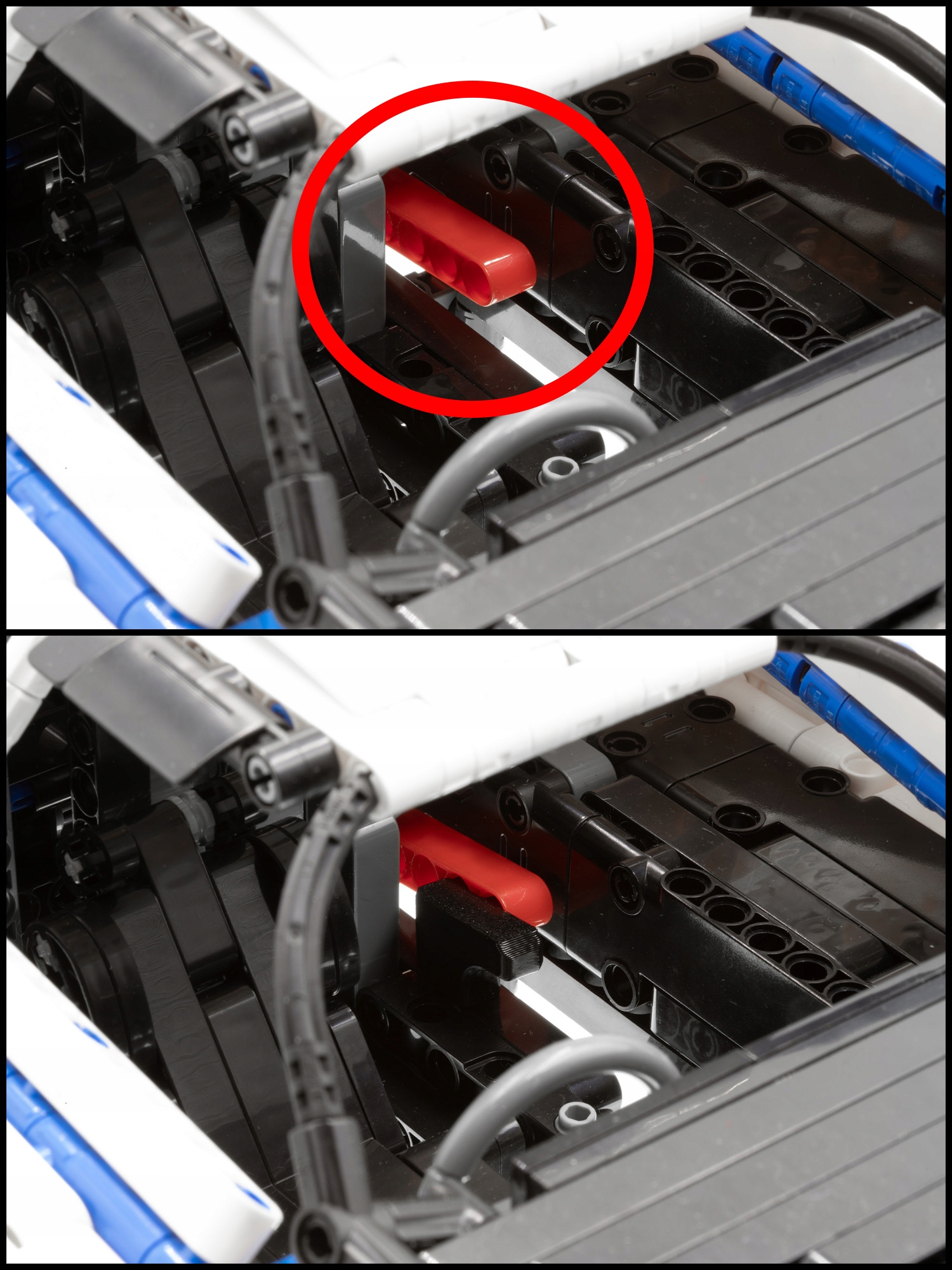 1️⃣ Obróć model podwoziem do góry i zamocuj uchwyt w miejscu pokazanym na zdjęciu obok.
