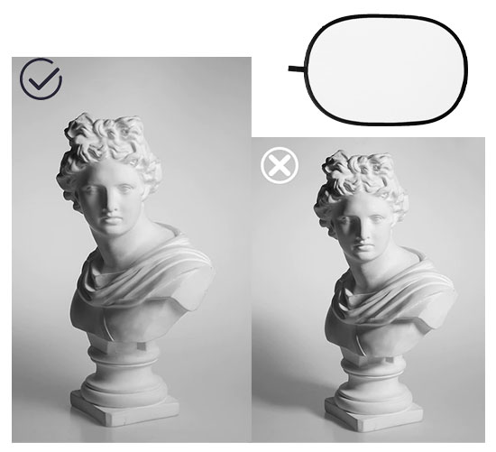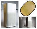 Płaszczyzna biała — odbija światło w sposób bardziej stonowany i miękki, niż srebrna, doświetlając neutralnym barwowo światłem. Daje naturalny efekt.