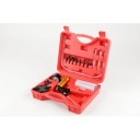 Ручной вакуумный насос с рабочим диапазоном от 0 до 760 мм рт. ст. (от -1 до 0 бар) чрезвычайно полезное устройство в домашней мастерской, гараже, а также в автосервисе и т.д. Вакуумный насос необходим для диагностики топливной системы, датчиков давления, клапан циркуляции выхлопных газов, регулятор давления топлива, дроссельная заслонка, усилитель тормозов, модулятор давления в автоматических коробках передач и многие другие компоненты. Кроме того, насос он также может использоваться для одиночной вентиляции тормозной системы. Благодаря количеству элементов в комплект устройства совместим с большинством автомобилей.