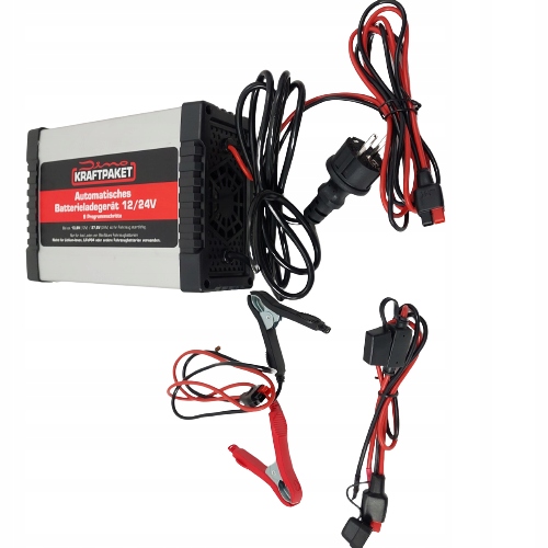 Ładowarka Dino KRAFTPAKET 136340 doskonale nadaje się do obsługi akumulatorów samochodowych, motocyklowych, a także innych pojazdów oraz urządzeń wyposażonych w akumulatory 12V lub 24V.