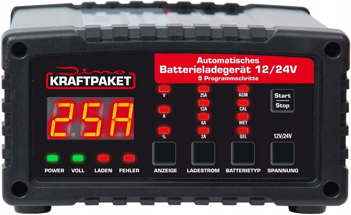 Dino KRAFTPAKET 136340 to zaawansowana ładowarka do akumulatorów, odpowiednia do ładowania oraz podtrzymania akumulatorów rozruchowych o napięciu 12 V lub 24 V. Urządzenie zostało zaprojektowane do obsługi różnego rodzaju baterii takich jak EFB, AGM, GEL, CAL oraz standardowych akumulatorów ołowiowych.