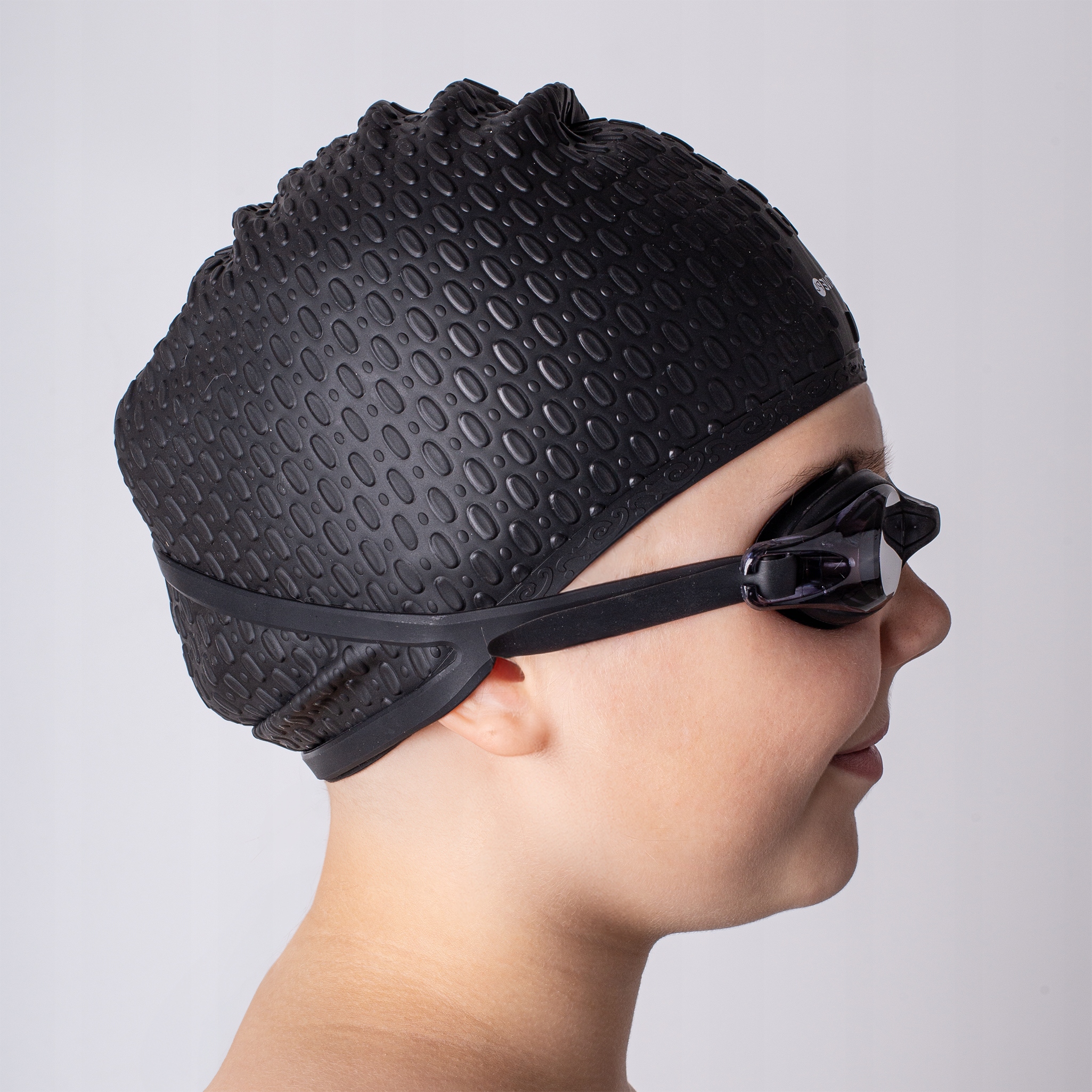 Czarny kolor dodaje sportowej elegancji, a silikonowa konstrukcja zapewnia odporność na rozciąganie, uszkodzenia i działanie chloru.