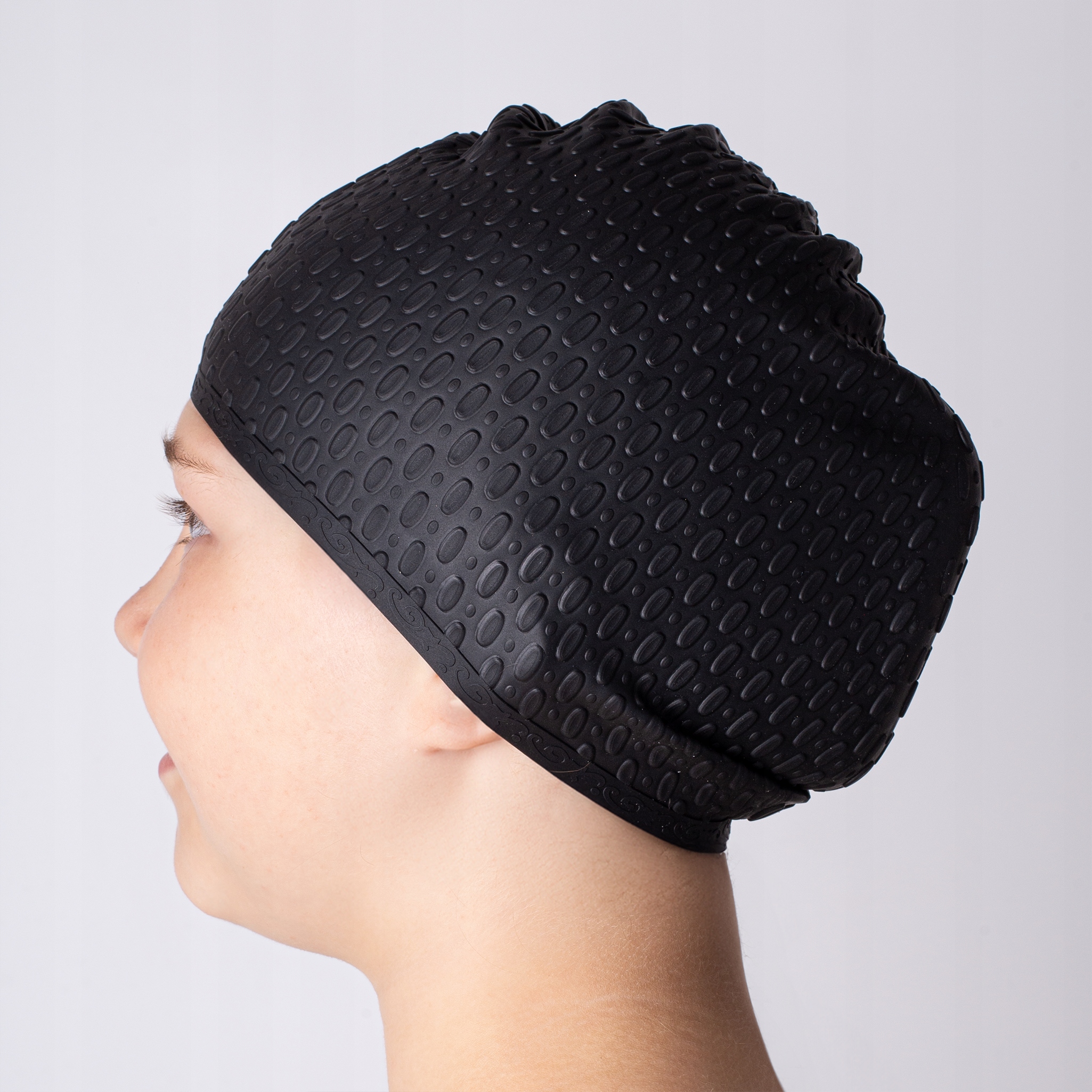 Wykonany z wytrzymałego silikonu, doskonale dopasowuje się do kształtu głowy i skutecznie ogranicza kontakt włosów z wodą.