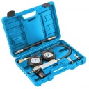 Тестер герметичности цилиндров в бензиновых двигателях позволяет диагностировать такие неисправности, как например, разрыв головки блока цилиндров, изношенные поршневые кольца и клапаны или перегоревшие прокладки. Указывает степень утечки цилиндра и давление в двигателе. Легко читаемые шкалы манометров считывание результата измерения. Индикатор изготовлен из устойчивых к повреждениям и при этом легких материалы. Кроме того, быстродействующие индикаторы снабжены резиновой амортизирующей крышкой. Части оснащен быстроразъемными соединителями для легкой и быстрой установки. В основном используется в сервисах автомобильные.
