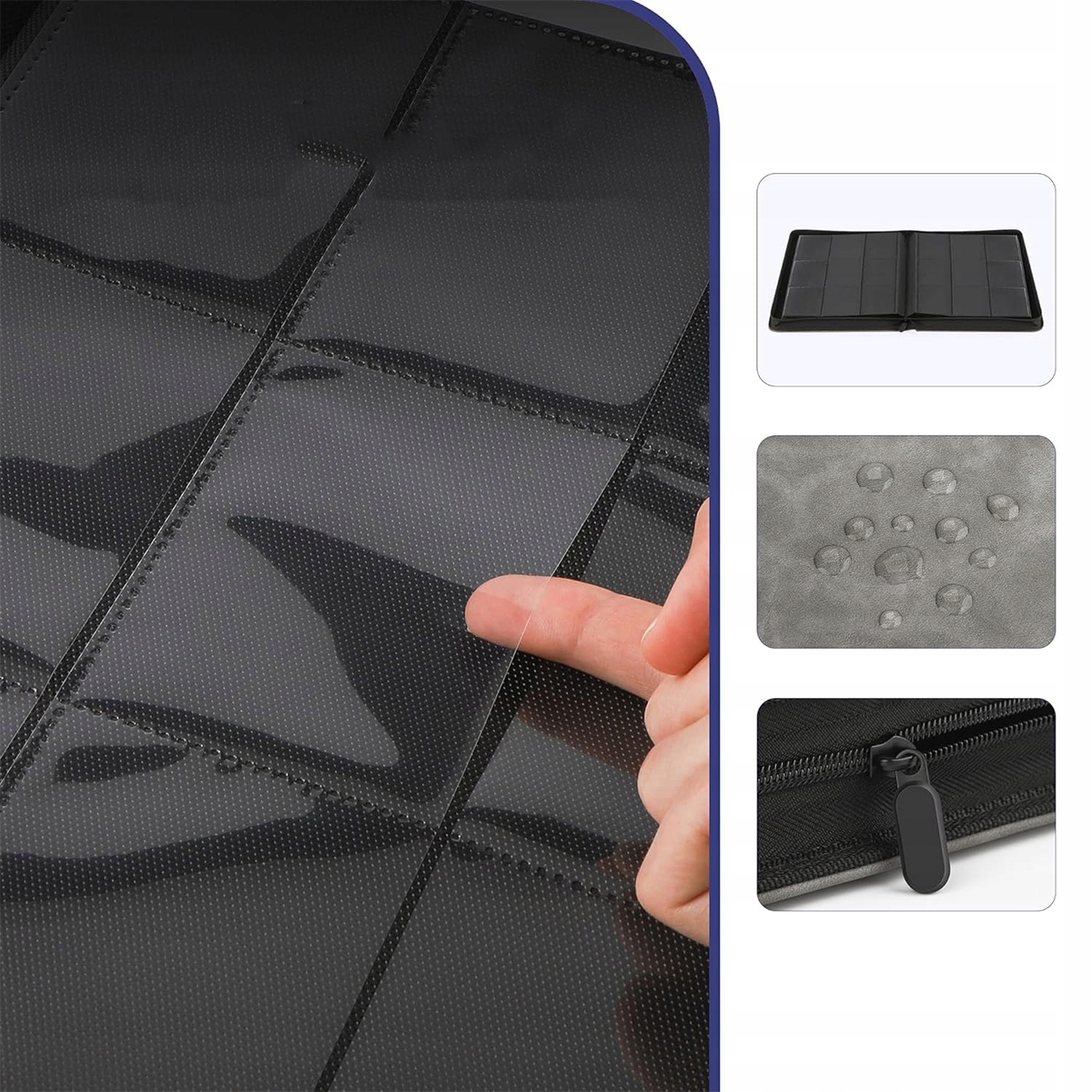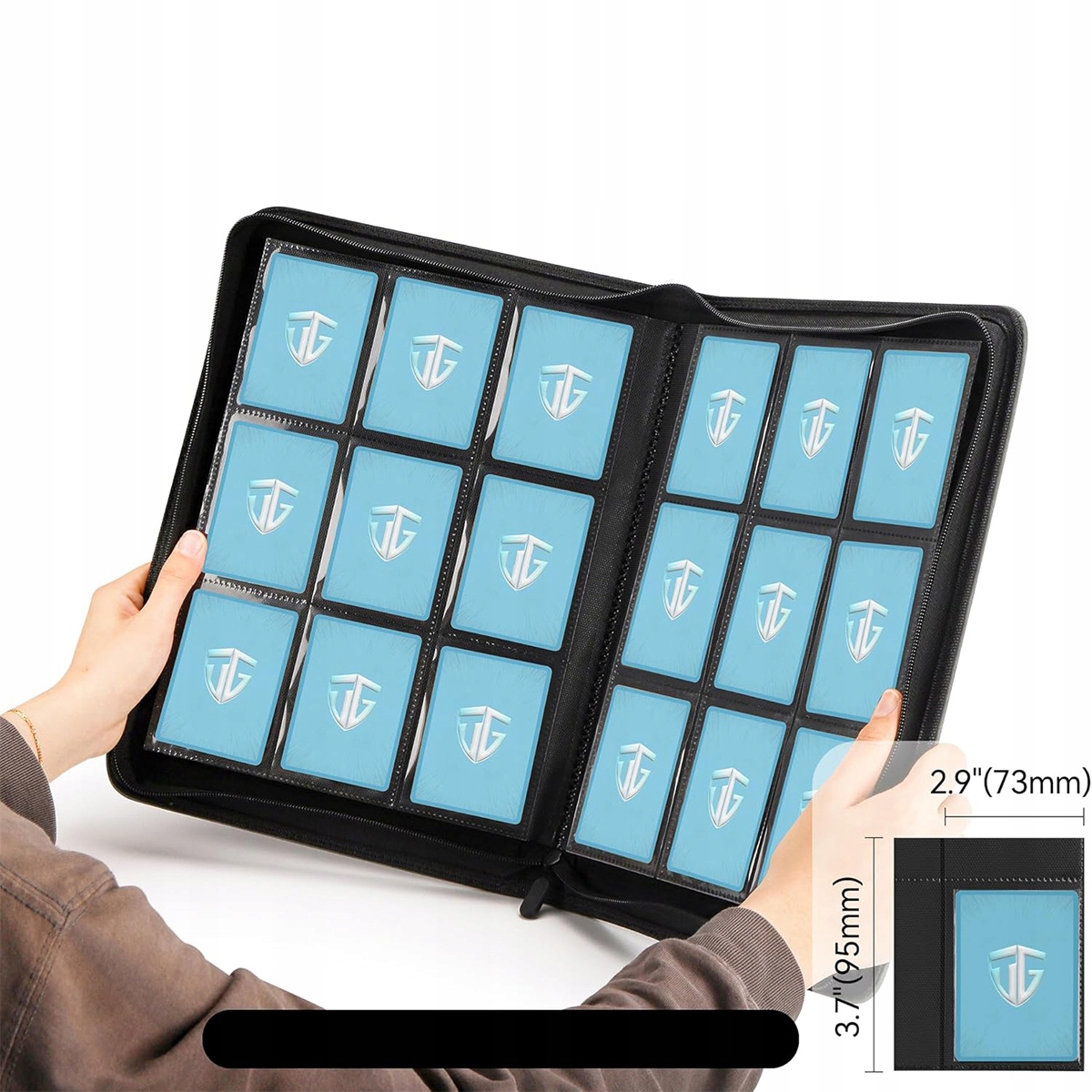Wysokiej jakości okładka ze skóry PU i gładki zamek błyskawiczny, wodoodporna i odporna na wstrząsy. Przezroczyste kieszonki na karty z polipropylenu są bezkwasowe, wytrzymałe i utrzymują karty płasko. Segregatory na karty zapewniają bezpieczne przechowywanie, zapobiegając blaknięciu i plamieniu kart.