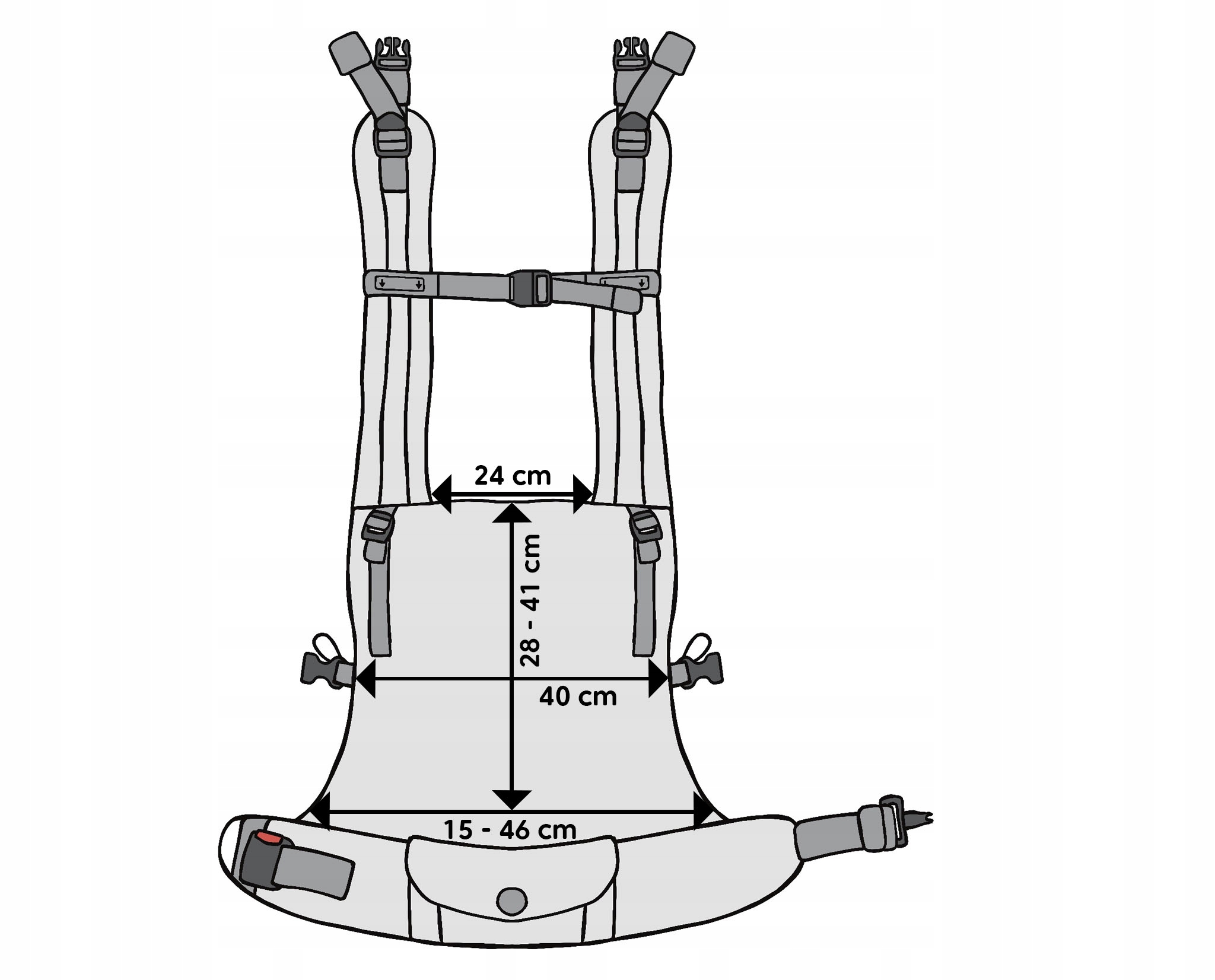 Zakres regulacji pasów nosidełka: