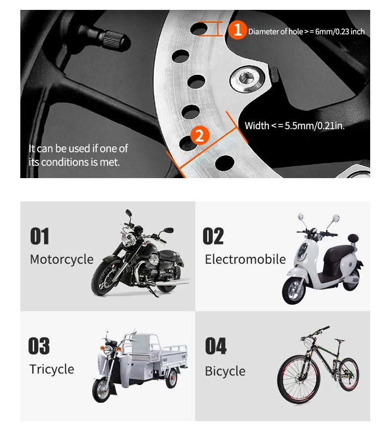 ➡️Blokada tarczy to praktyczne rozwiązanie dla motocyklistów, aby chronić swoje motocykle lub rowery podczas parkowania na zewnątrz. Alarm włączy się automatycznie po wykryciu wibracji lub wstrząsu, dzięki czemu Twoje rzeczy będą bezpieczne. Pasuje do różnych pojazdów z hamulcami tarczowymi do grubości tarczy do 7mm: motocykle, skutery, rowery, hulajnogi itp.