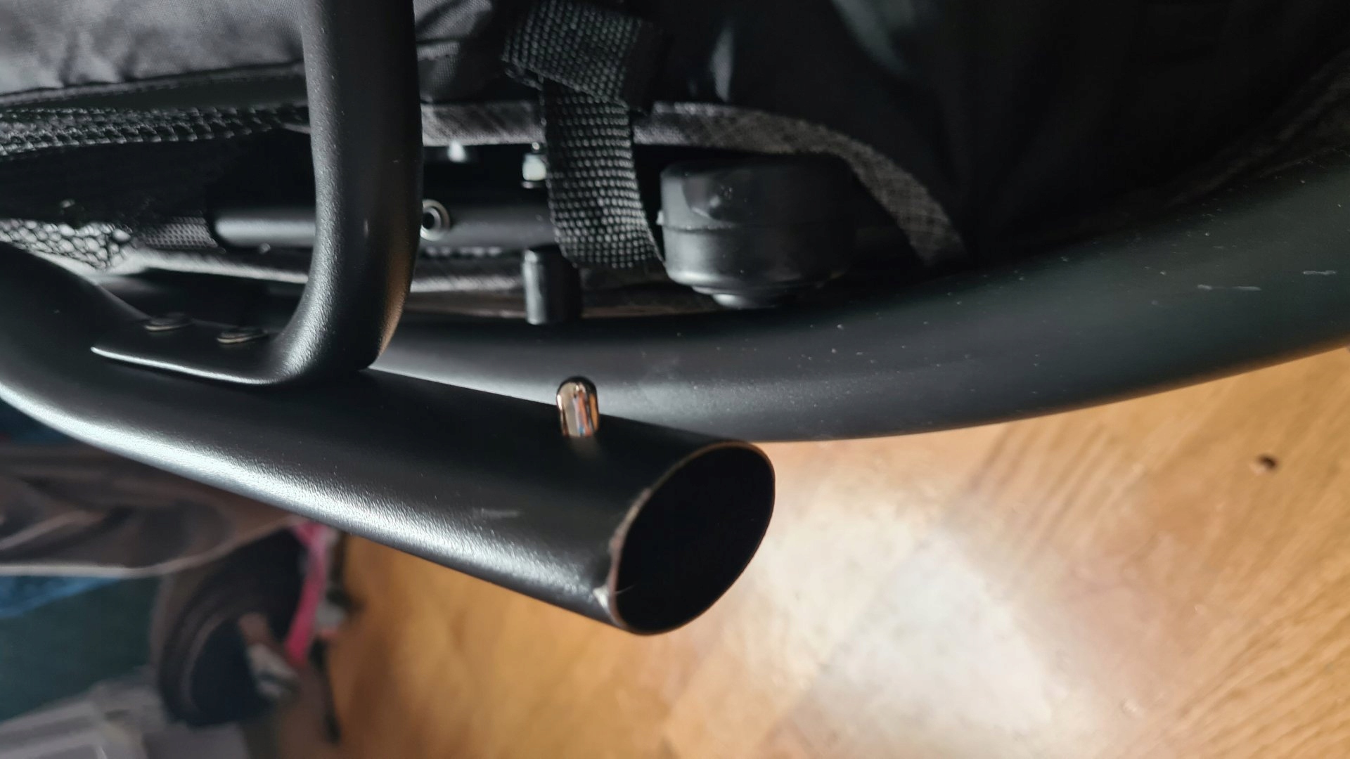 Na pałąku oraz budce umieszczone zostały odblaskowe elementy, dzięki czemu wózek jest lepiej widoczny nawet z większej odległości.