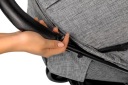 Kieszonka umieszczona z tyłu wózka idealnie sprawdza się do przechowania podręcznych przedmiotów małych zabawek dziecka lub portfela czy smartfona rodzica. Zamykana na zamek gwarantuje całkowite bezpieczeństwo.