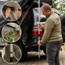 W komplecie znajdują się regulowane wsporniki teleskopowe, które można wysuwać w zakresie od 120 do 225 cm. Umożliwia to łatwe dopasowanie wysokości zadaszenia do terenu, wysokości auta, a także zapewnia stabilność w trudniejszych warunkach pogodowych. Dodatkowe odblaskowe linki naciągające zwiększają bezpieczeństwo po zmroku, czyniąc zadaszenie widocznym nawet w słabym świetle.