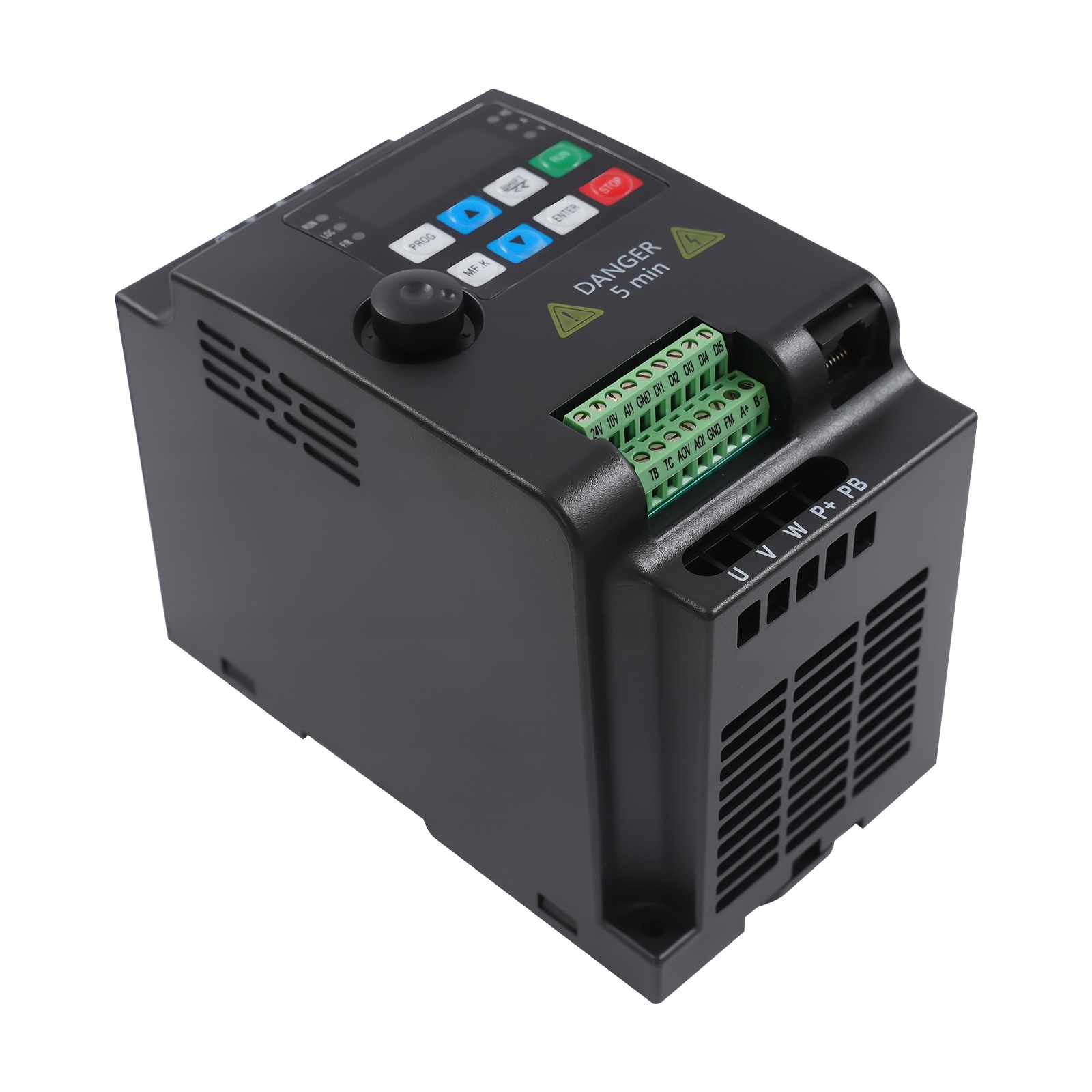 To trójfazowy przetwornica częstotliwości o mocy 2,2 kW, która może stabilnie sterować silnikiem, zapewniając jego sprawną pracę. Wykonana jest głównie z wytrzymałej plastikowej obudowy i wysokiej jakości komponentów wewnętrznych, dzięki czemu jest bardzo trwała. Wygodny panel przycisków ułatwia obsługę i użytkowanie. Przetwornica może stabilnie konwertować częstotliwość prądu, aby regulować prędkość silnika i zapewnić dokładniejsze i precyzyjniejsze przetwarzanie.