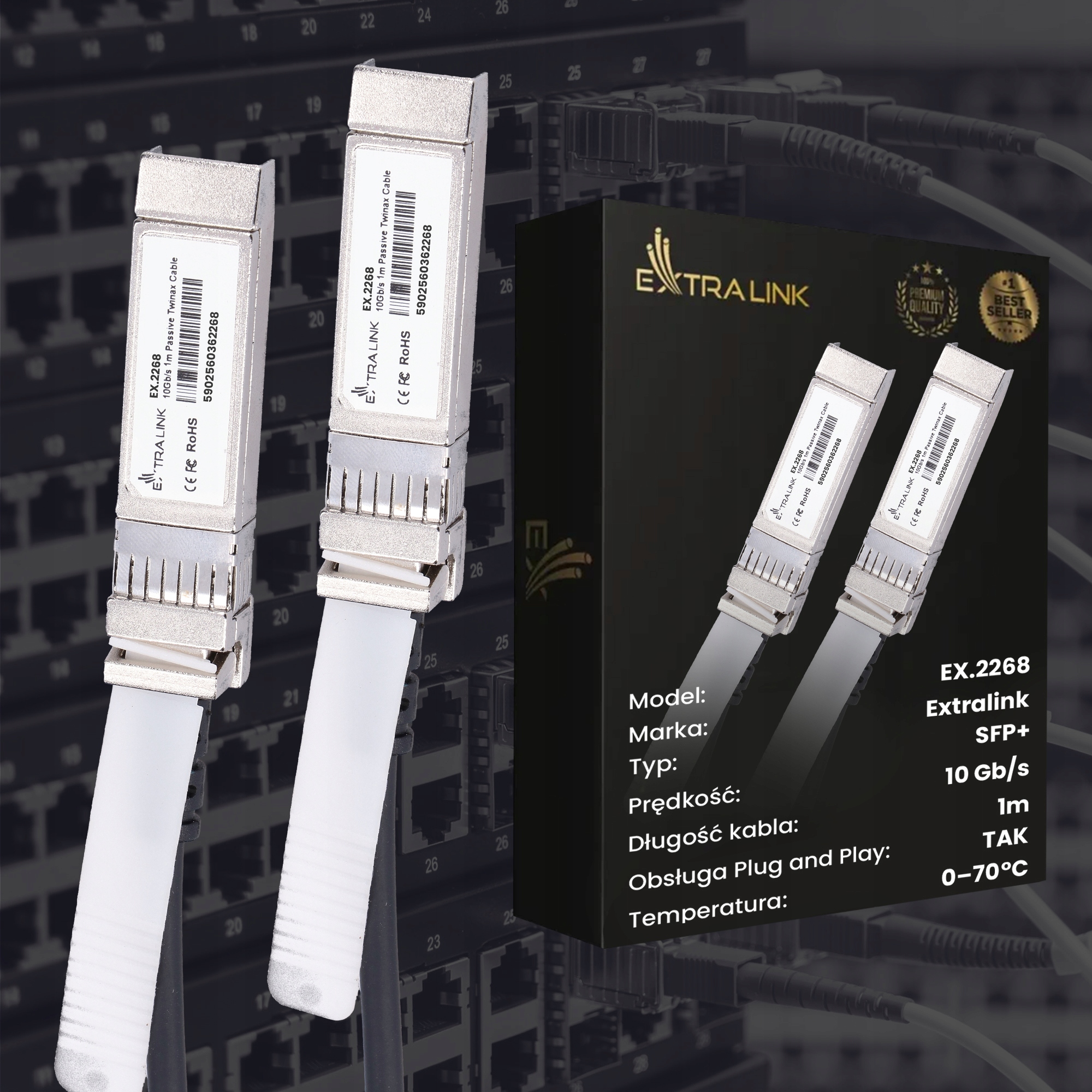 Kable DAC SFP+ to wysokowydajne, ekonomiczne rozwiązania wejścia/wyjścia w sieciach Ethernet 10Gb i kanałach światłowodowych 10G. Dzięki miedzianym kablom DAC SFP+ producenci sprzętu mogą osiągać wysokie zagęszczenie portów oraz zmniejszać koszty konfigurowania, eksploatacji czy zasilania. Zespoły kabli o dużej prędkości spełniają, a często nawet przekraczają wymagania norm branżowych dotyczących Gigabit Ethernet i Fibre Channel w zakresie wydajności i niezawodności. Extralink DAC SPF+ 10G oferuje prędkość transmisji 10 Gbps na odległość 1 m. Doskonale nadaje się do zastosowania w sieciach SAN, NAS, serwerach pamięci masowej, przełącznikach i routerach o ultrawysokiej przepustowości lub w infrastrukturze sieciowej centrów danych.