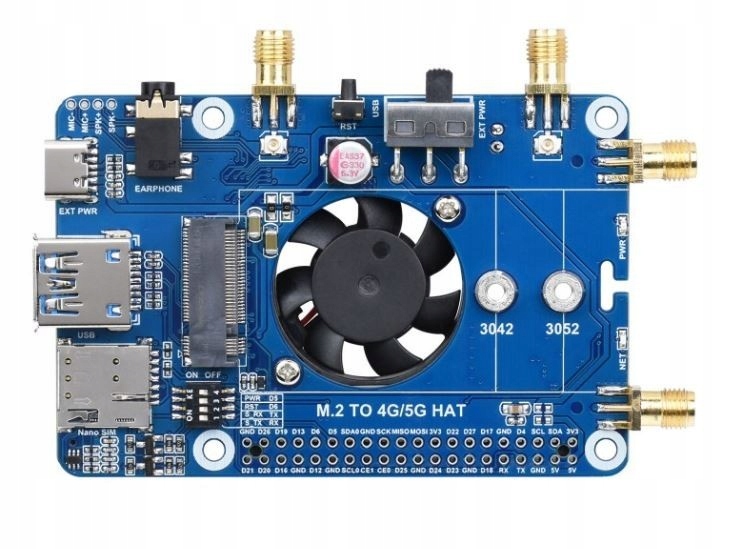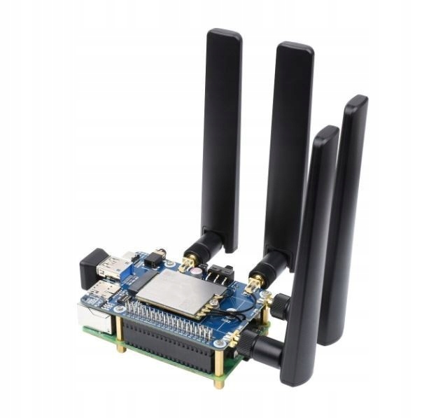 Płytka bazowa wyposażona została w złącze M2 B Key, dzięki czemu umożliwia połączenie z różnymi modułami komunikacyjnymi 4G lub 5G ze złączem M2. Na płytce umieszczono również port USB 3.1, gniazdo audio, dekoder oraz gniazdo karty SIM. Do Raspberry Pi zestaw podłączany jest za pomocą standardowego złącza 40-pinowego. Do zestawu dołączona została obudowa, anteny i wentylator chłodzący. Pełna dokumentacja dostępna jest na stronie Wiki produktu.